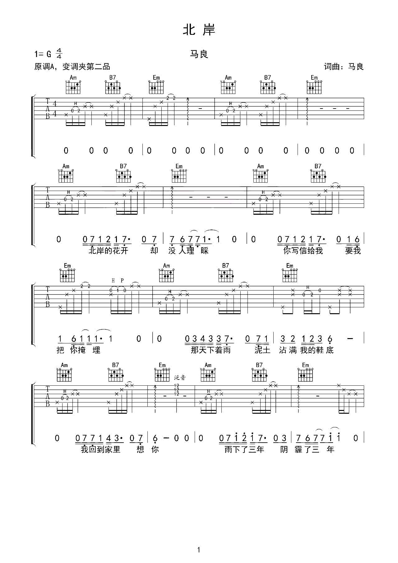 吉他谱 | 热门弹唱《北岸》