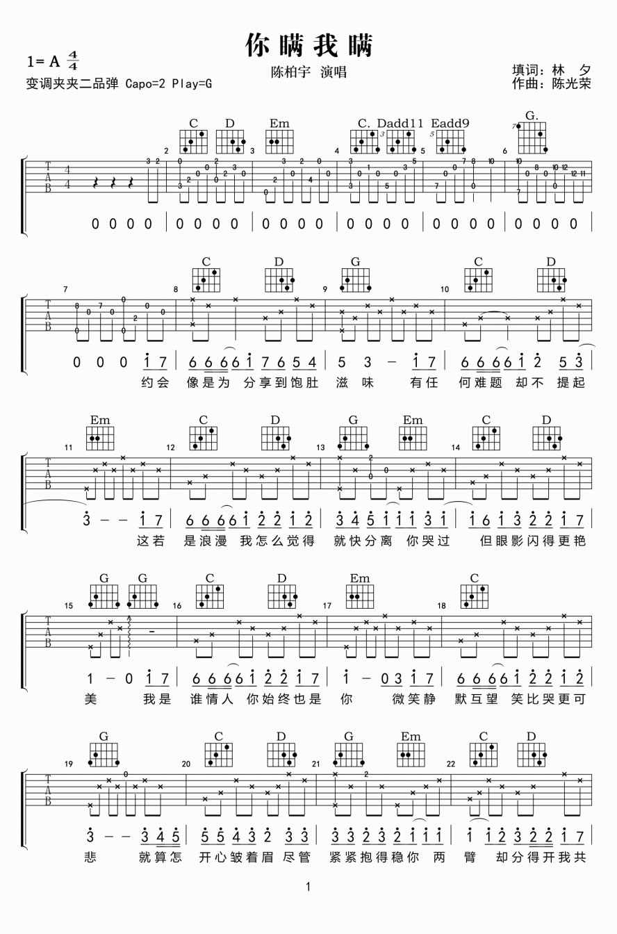 吉他谱 | 热门弹唱《你瞒我瞒》