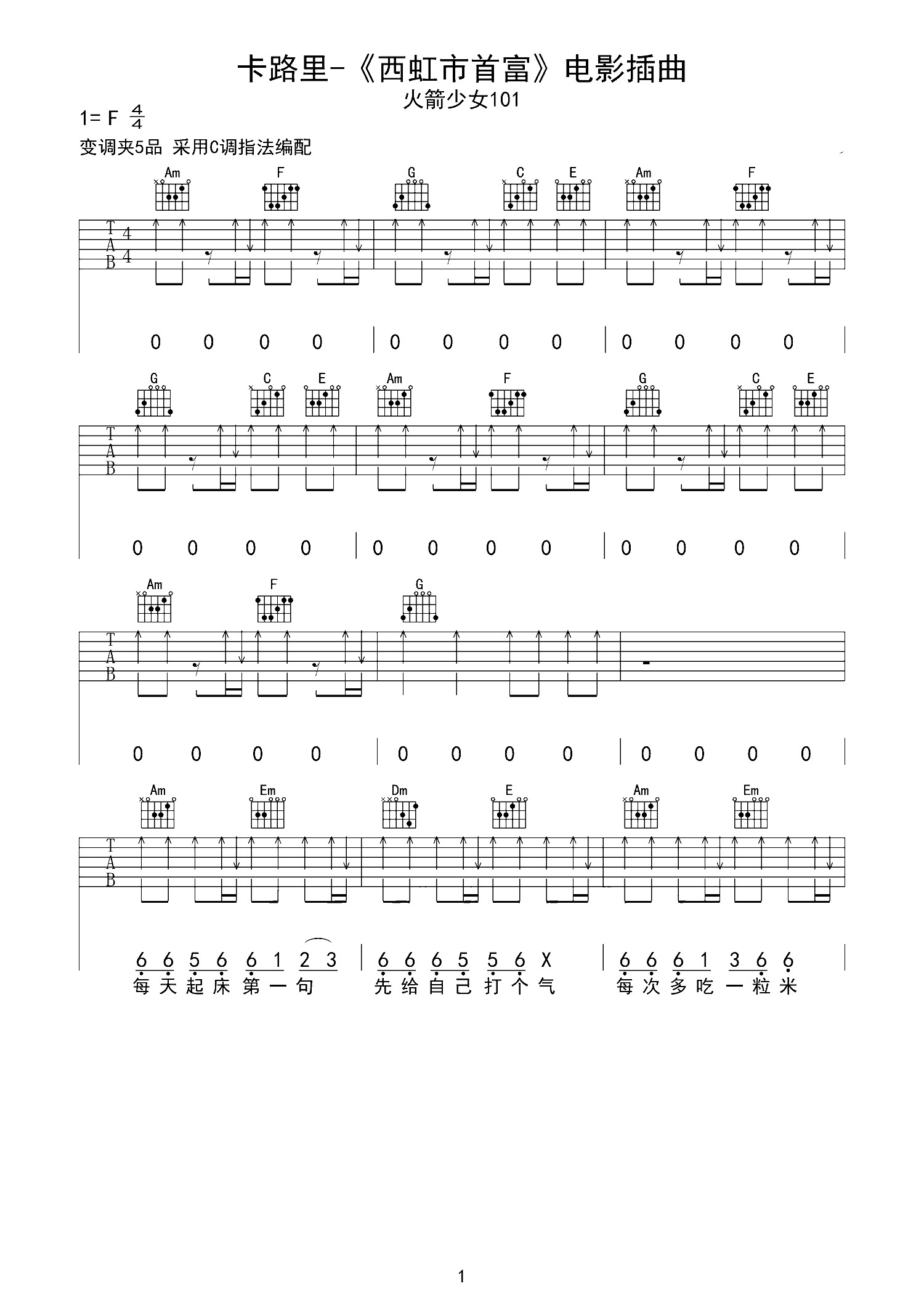 蒲公英的约定吉他谱_C调_周杰伦_弹唱六