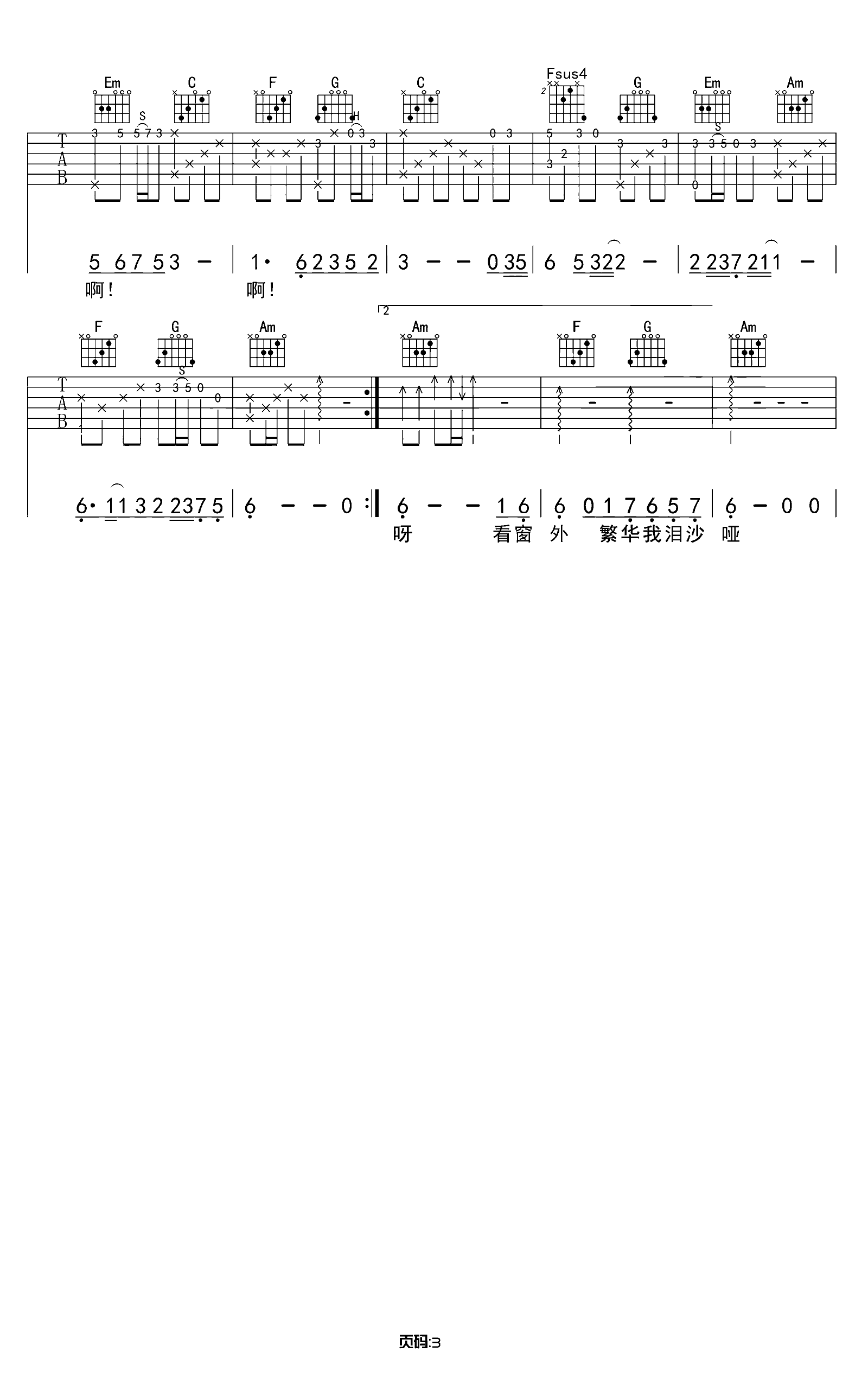 追光者指弹谱_岑宁儿_吉他独奏谱_指弹