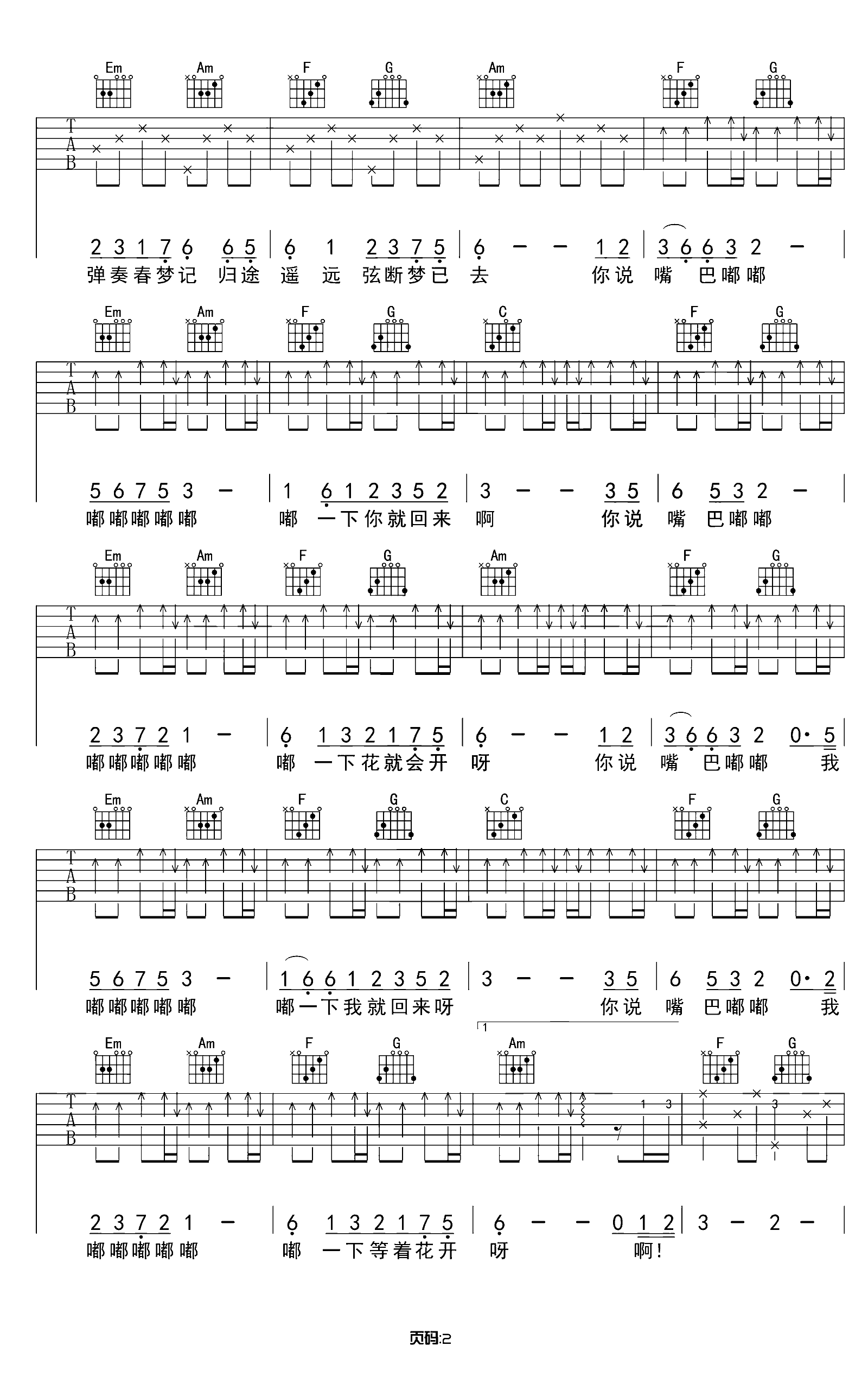 吉他谱 | 热门弹唱《嘴巴嘟嘟》