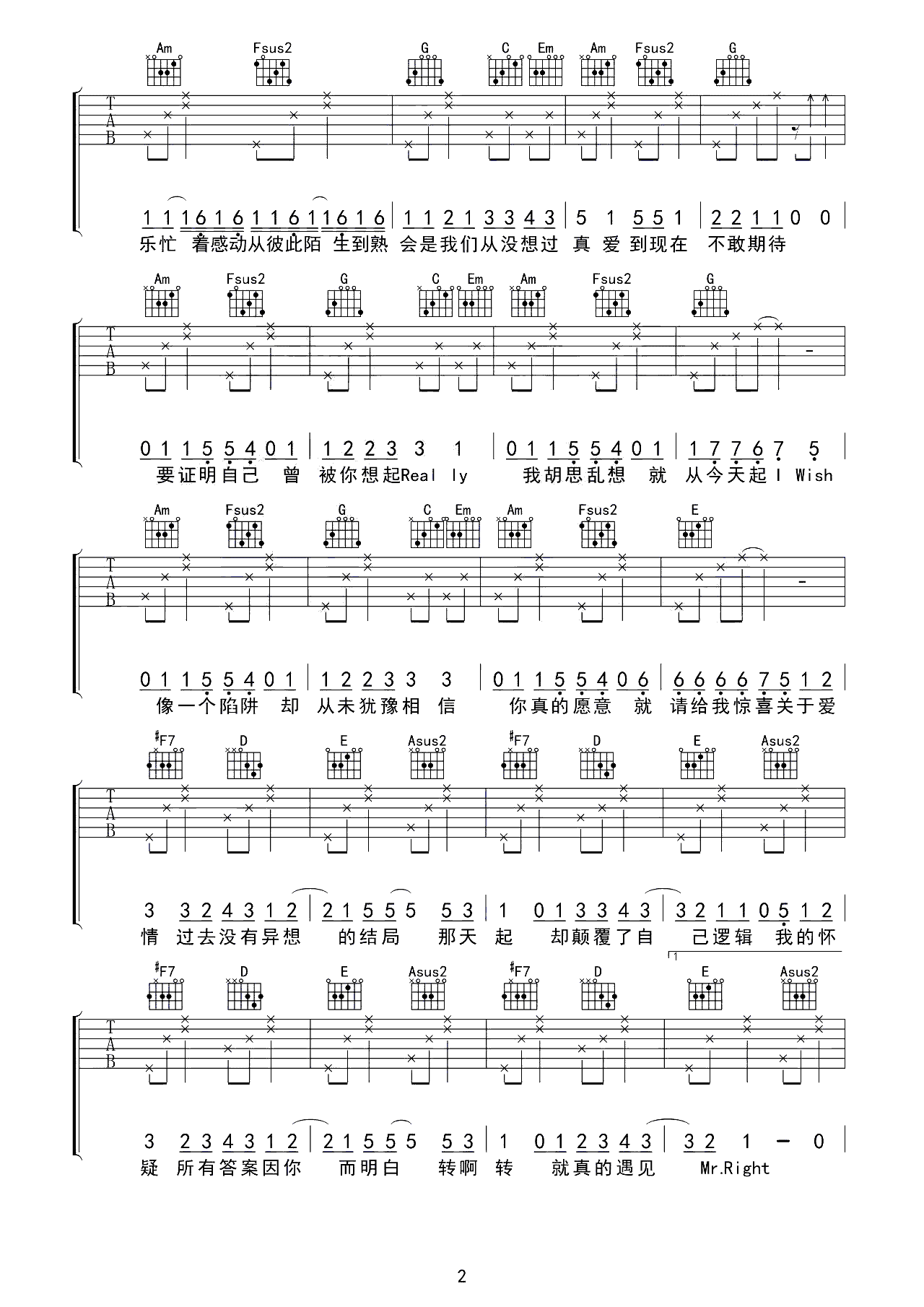 因为爱情吉他谱 王菲/陈奕迅 弹唱谱高