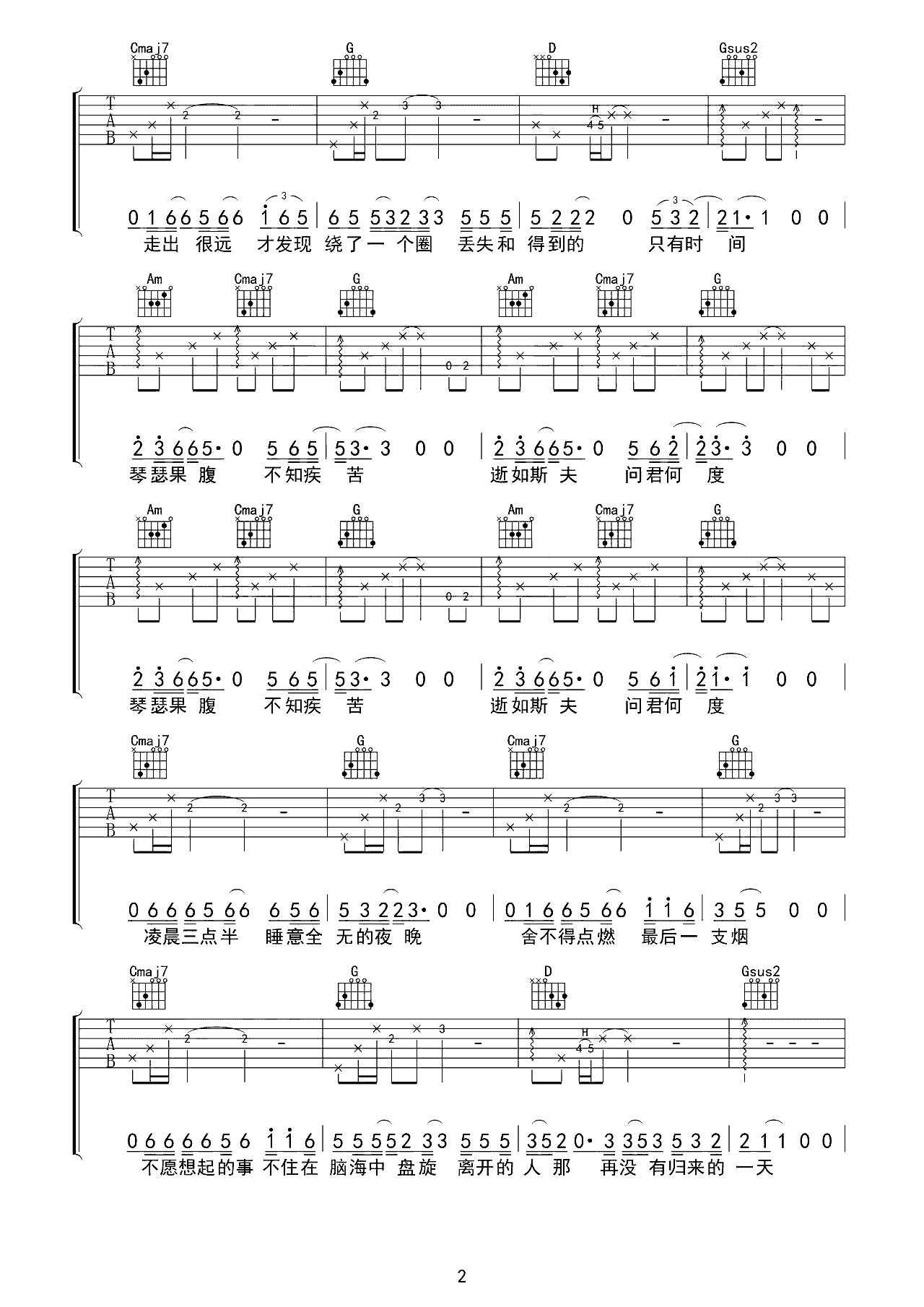 树2吉他谱