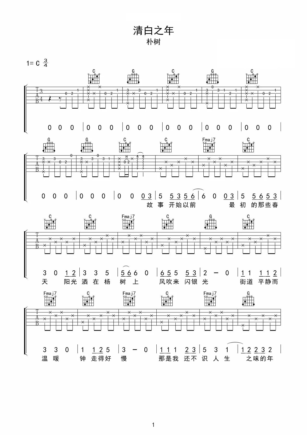 吉他谱 | 热门弹唱《清白之年》