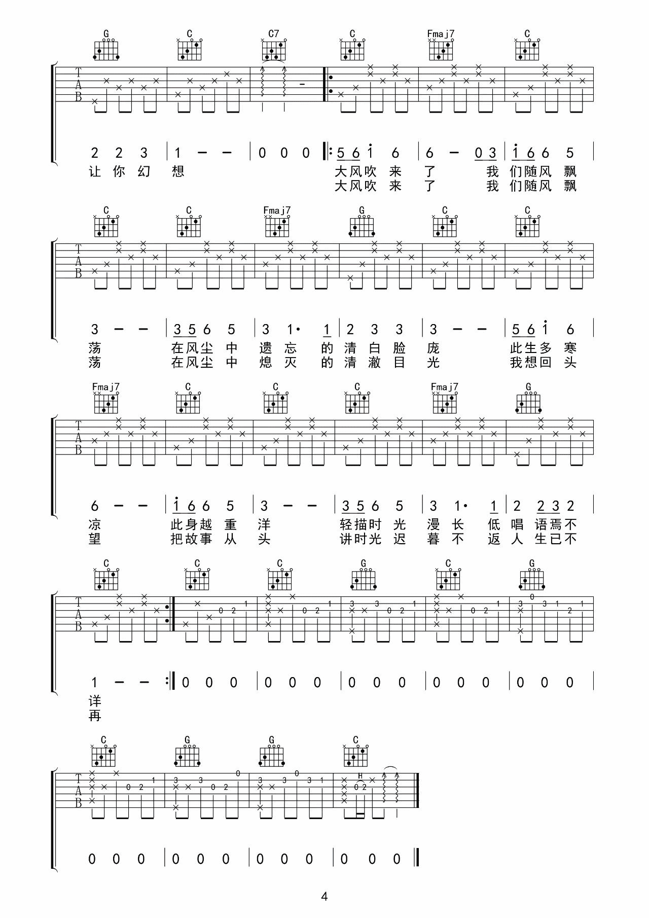 相风一样自由吉他谱
