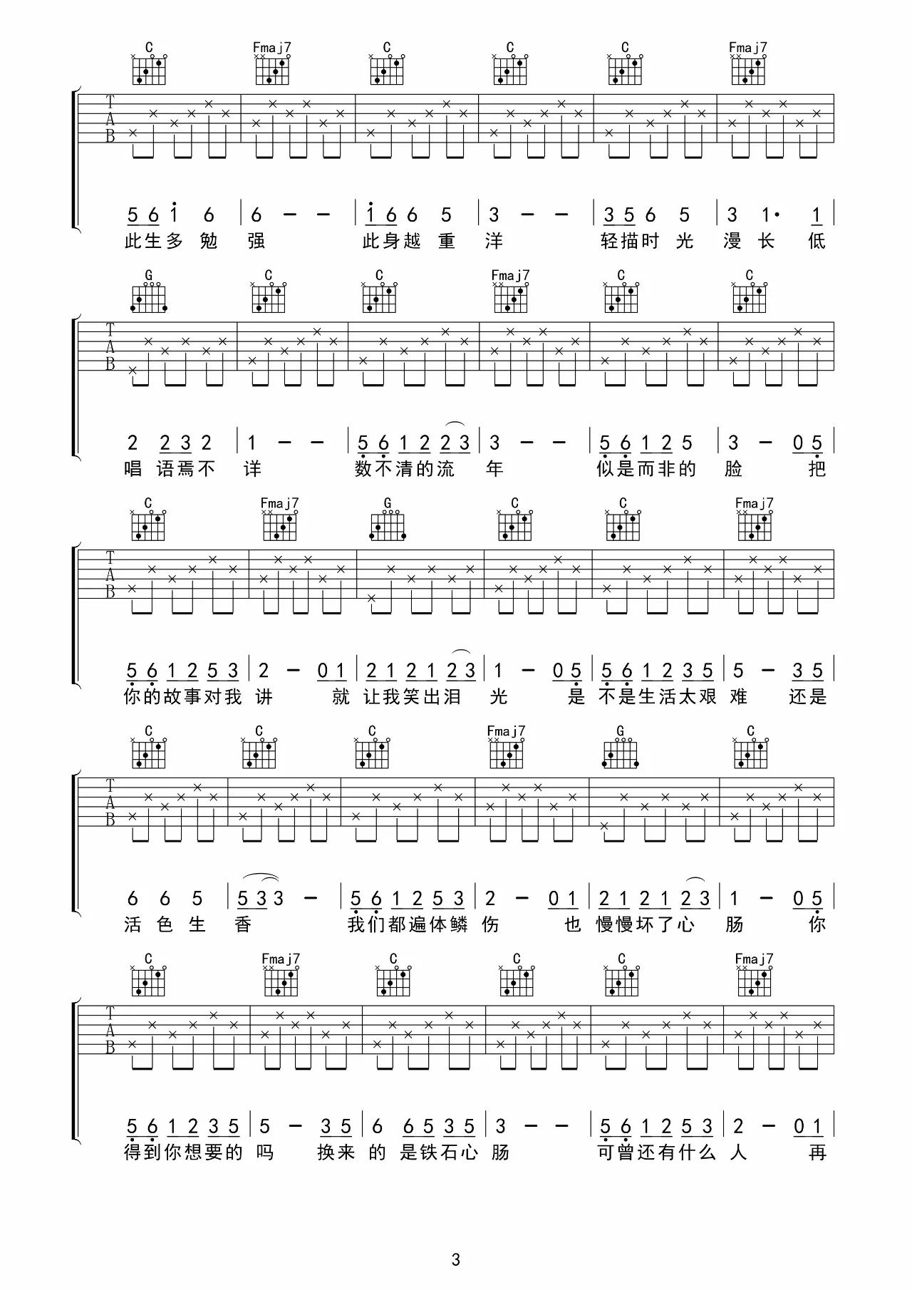 半生熟吉他谱
