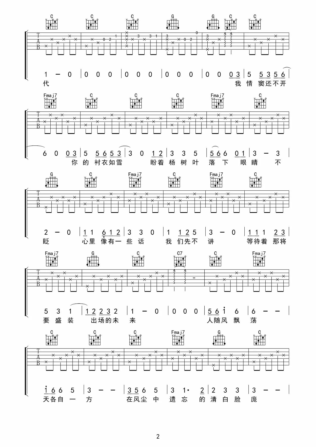 流行的云吉他谱