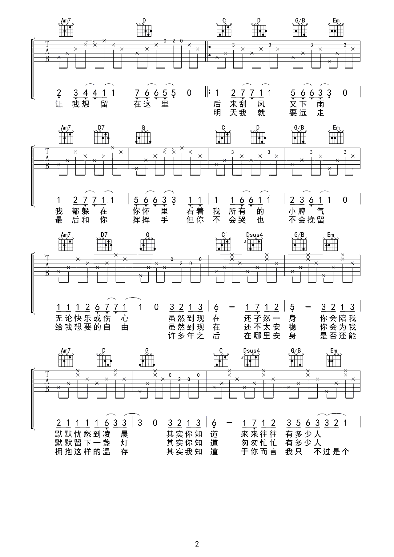 你的柔情我永远不懂吉他谱