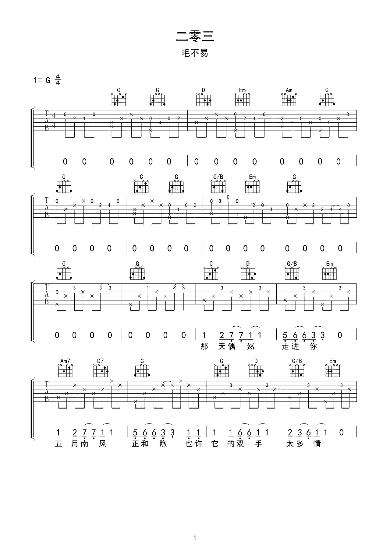 吉他谱 | 热门弹唱《二零三》