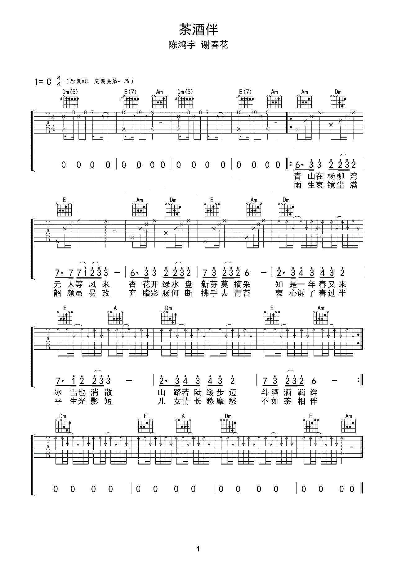 一半吉他谱C调_薛之谦《一半》弹唱教学