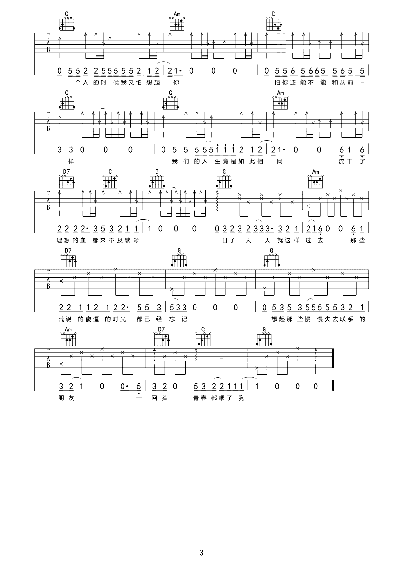 海底吉他谱_一只榴莲_G调_高清弹唱谱