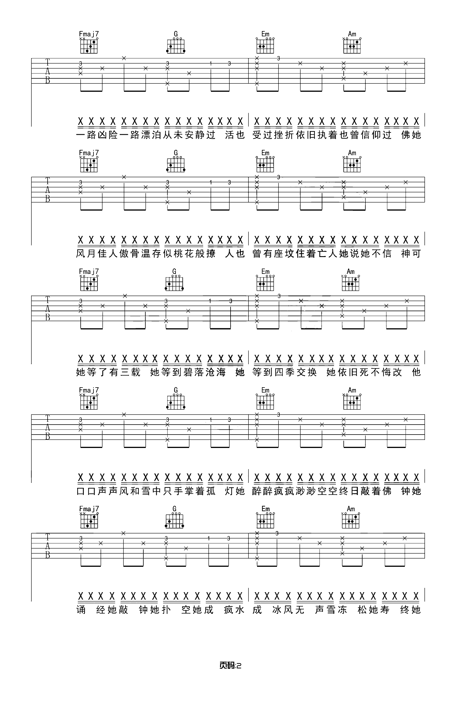 灰姑娘吉他谱 郑钧 G调弹唱谱 图片谱高
