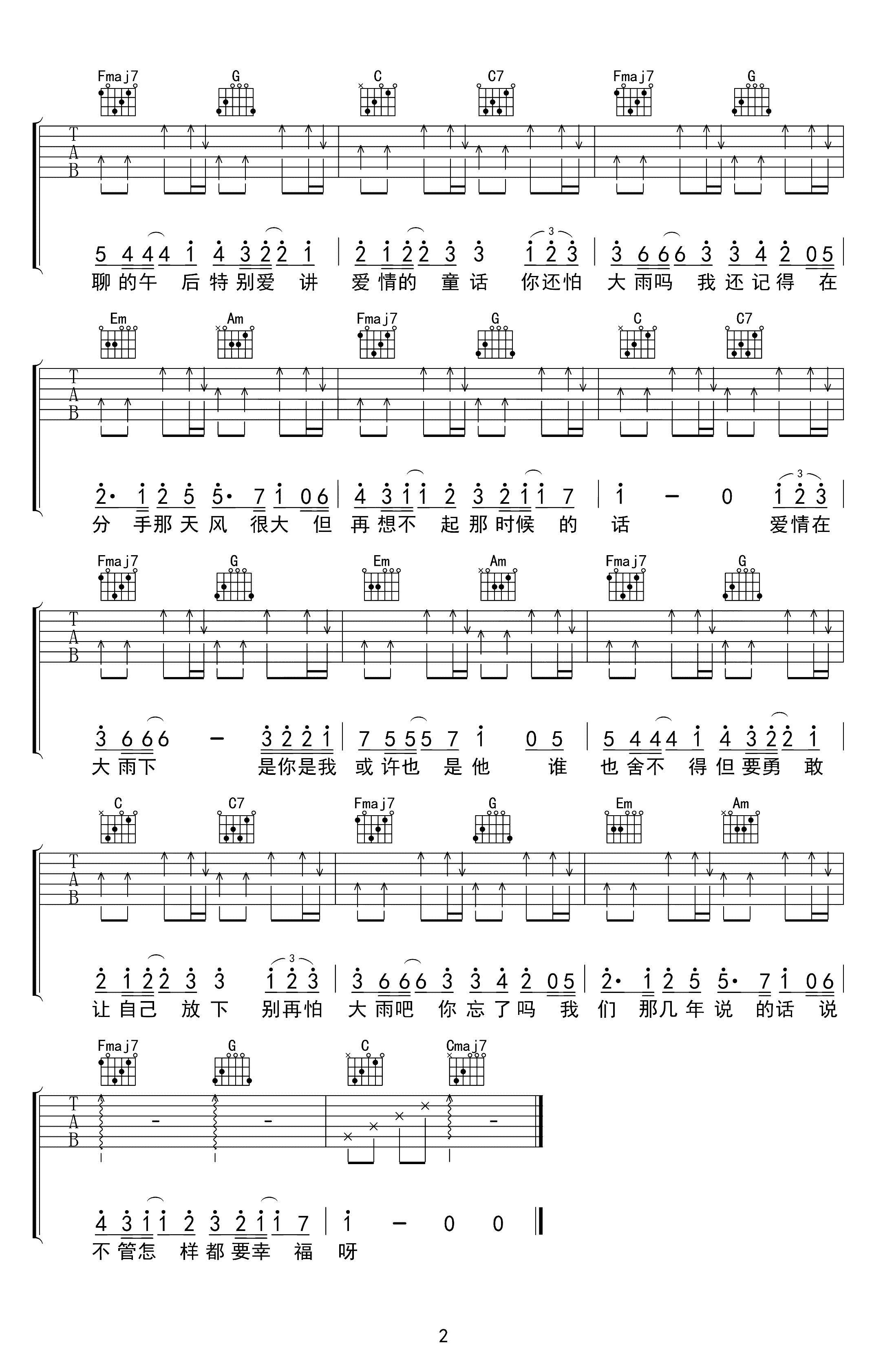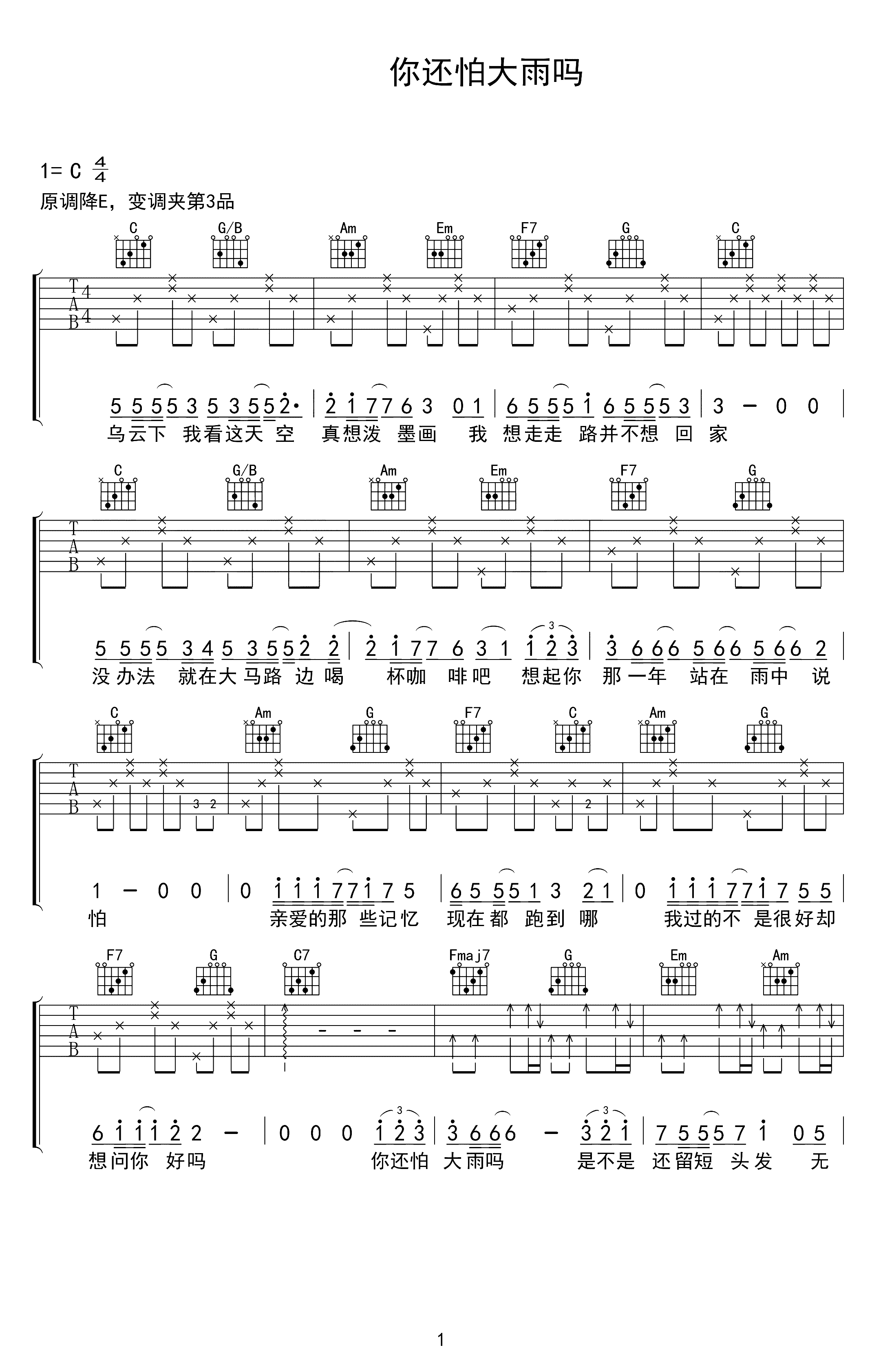 吉他谱 | 热门弹唱《你还怕大雨吗》