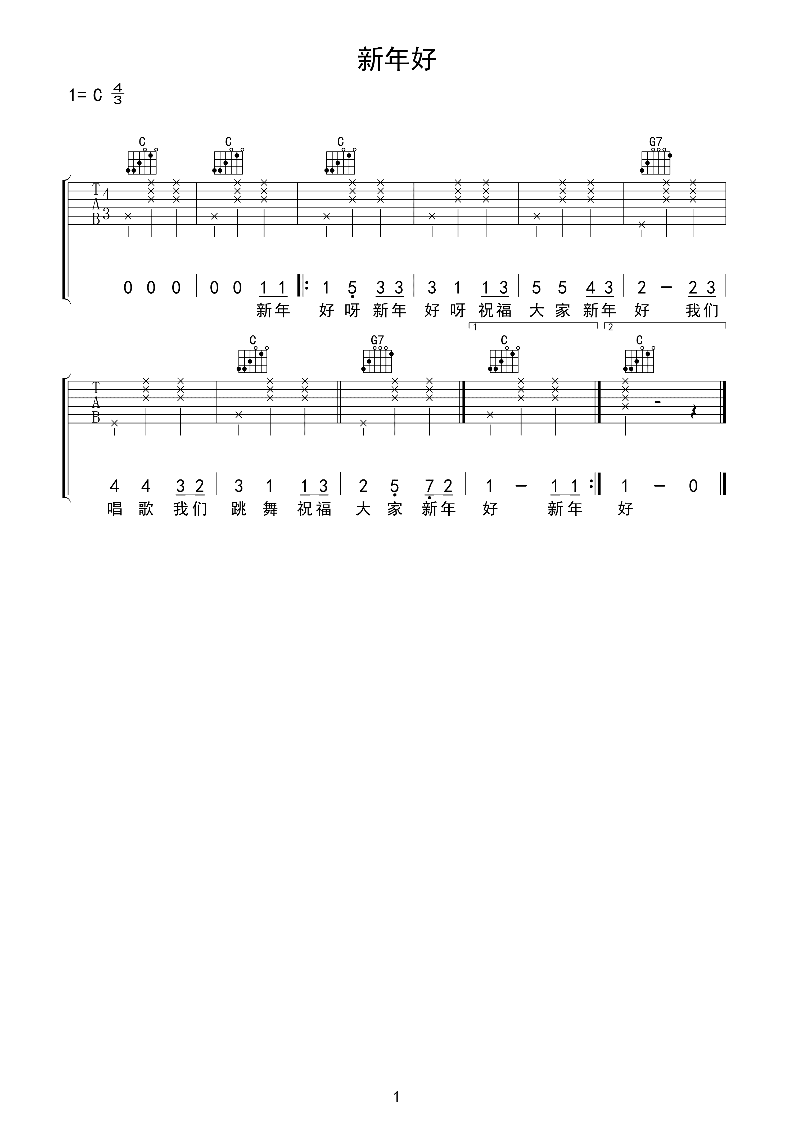 吉他谱 | 入门弹唱《新年好》