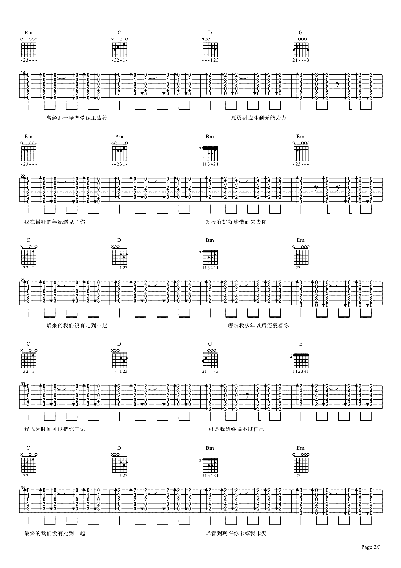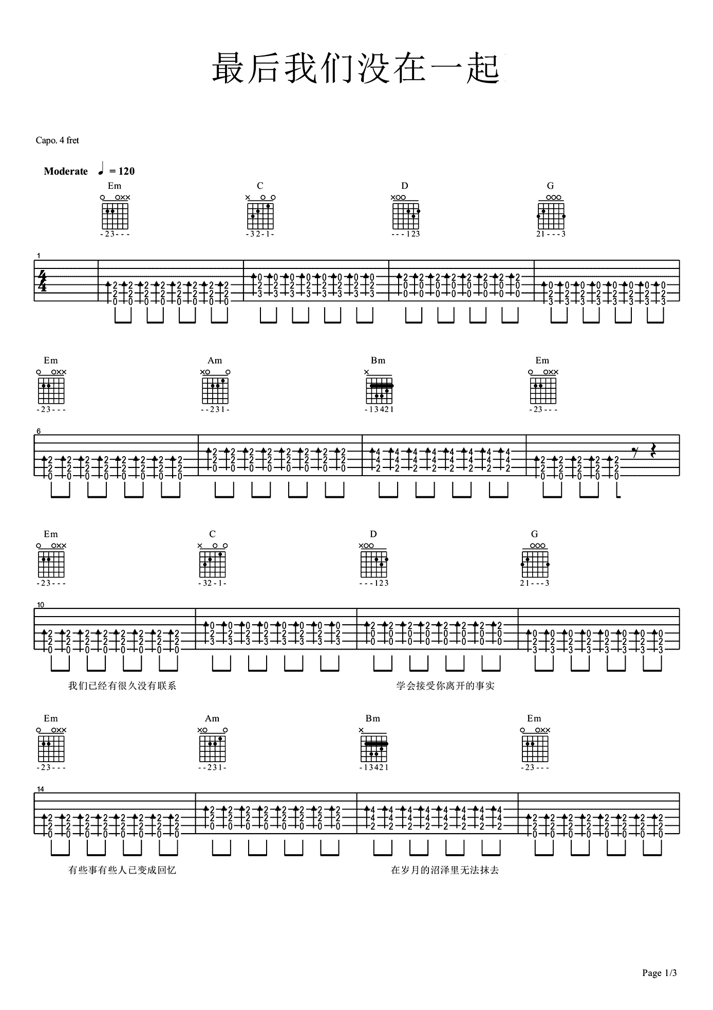 吉他谱 | 热门弹唱《最后我们没在一起》