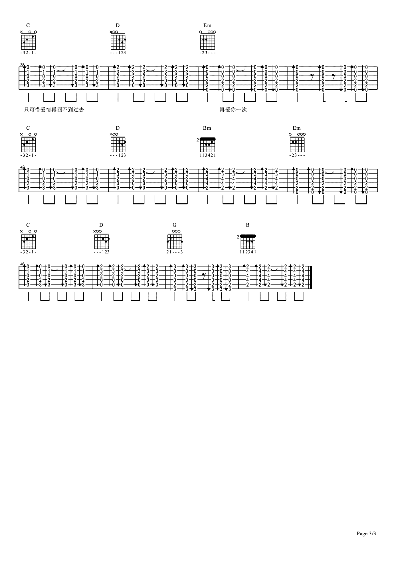 不再犹豫 完整版六线谱吉他谱