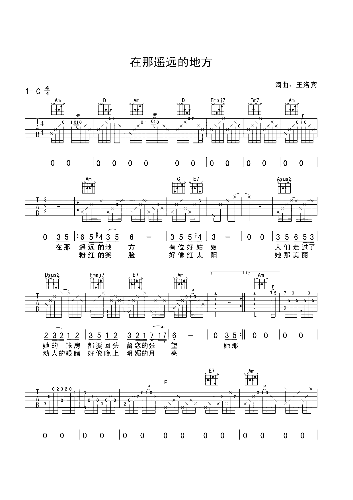 吉他谱 | 热门弹唱《在那遥远的地方》