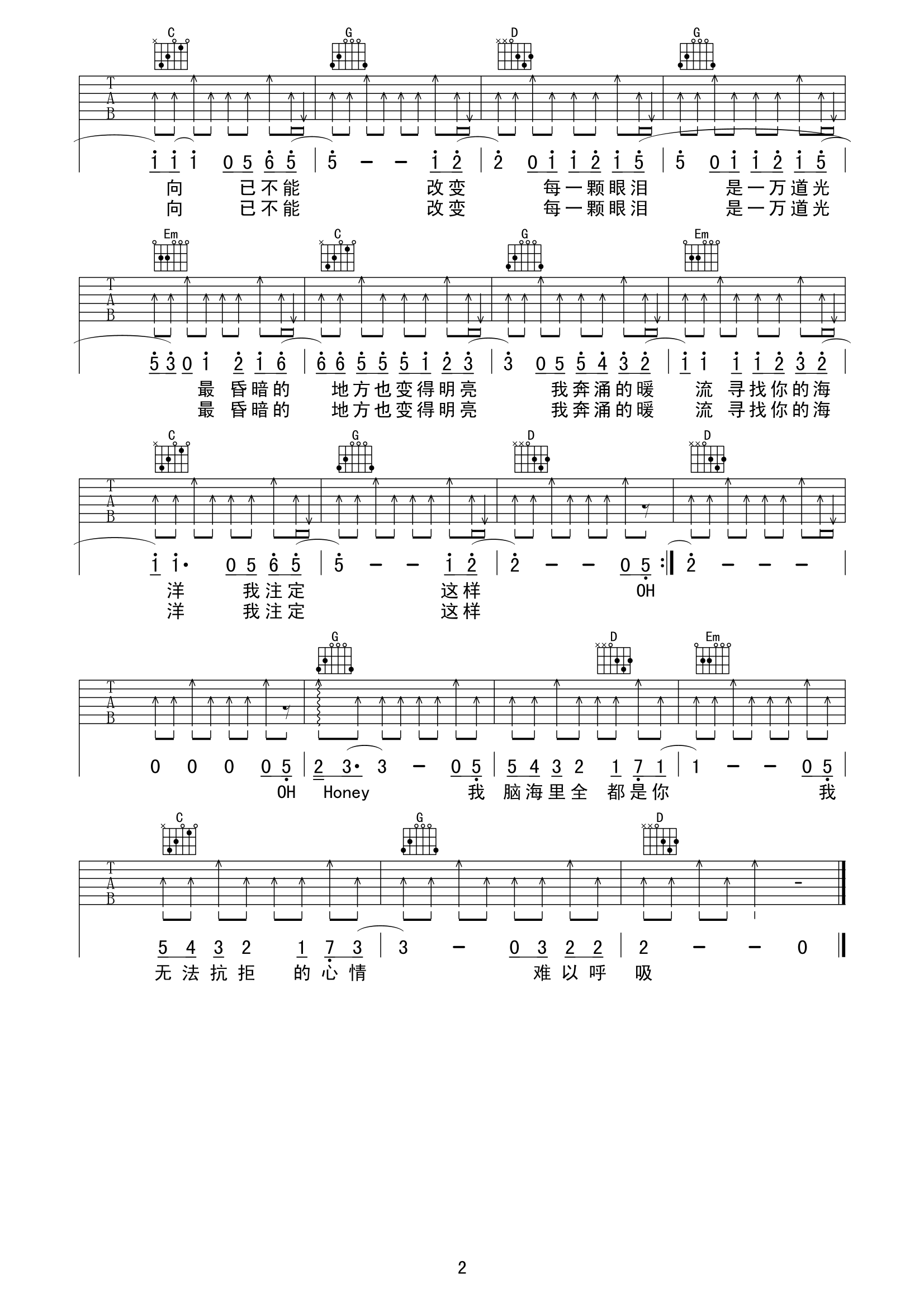 有点甜吉他谱 汪苏泷/BY2 有点甜六线谱