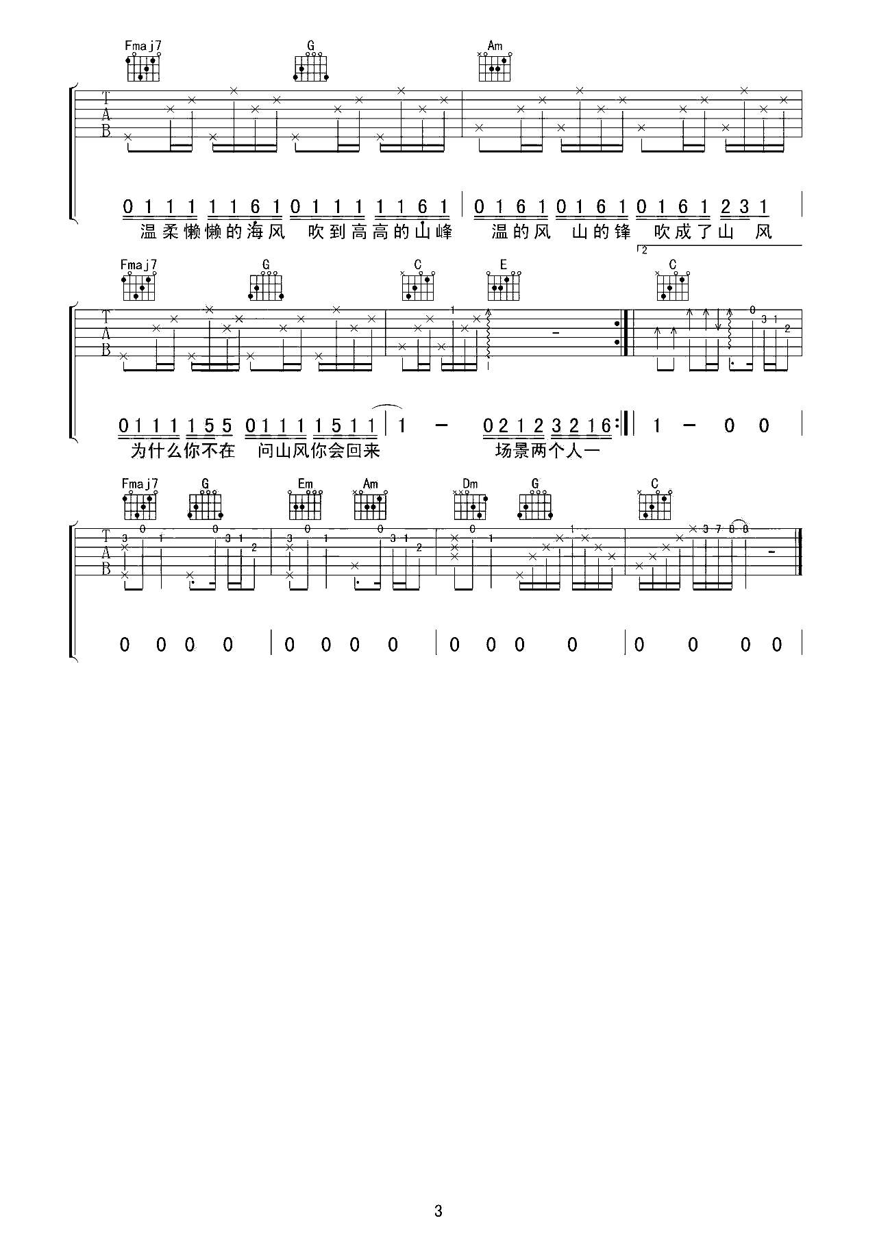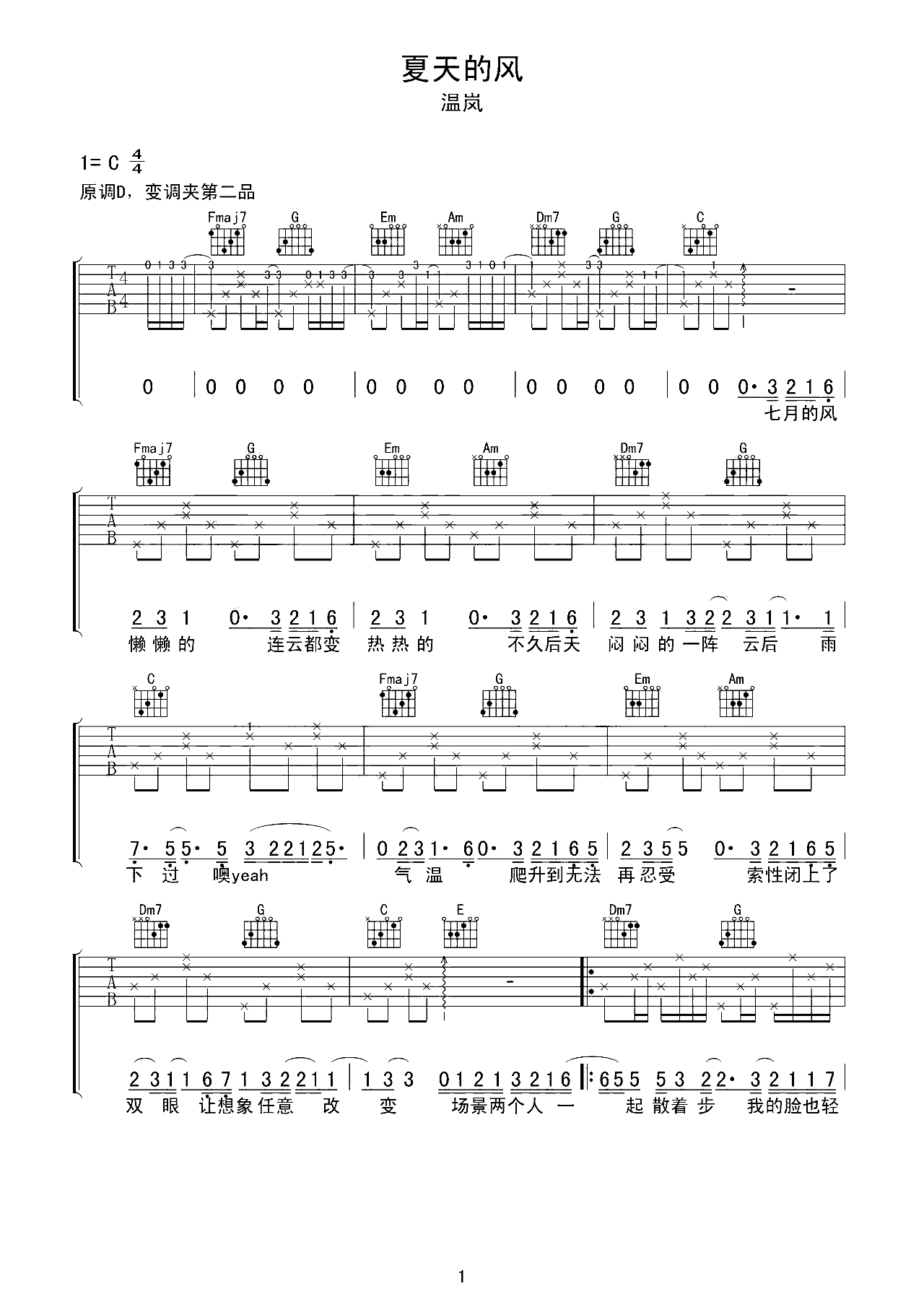 等风雨经过吉他谱_张学友/周杰伦_C调弹