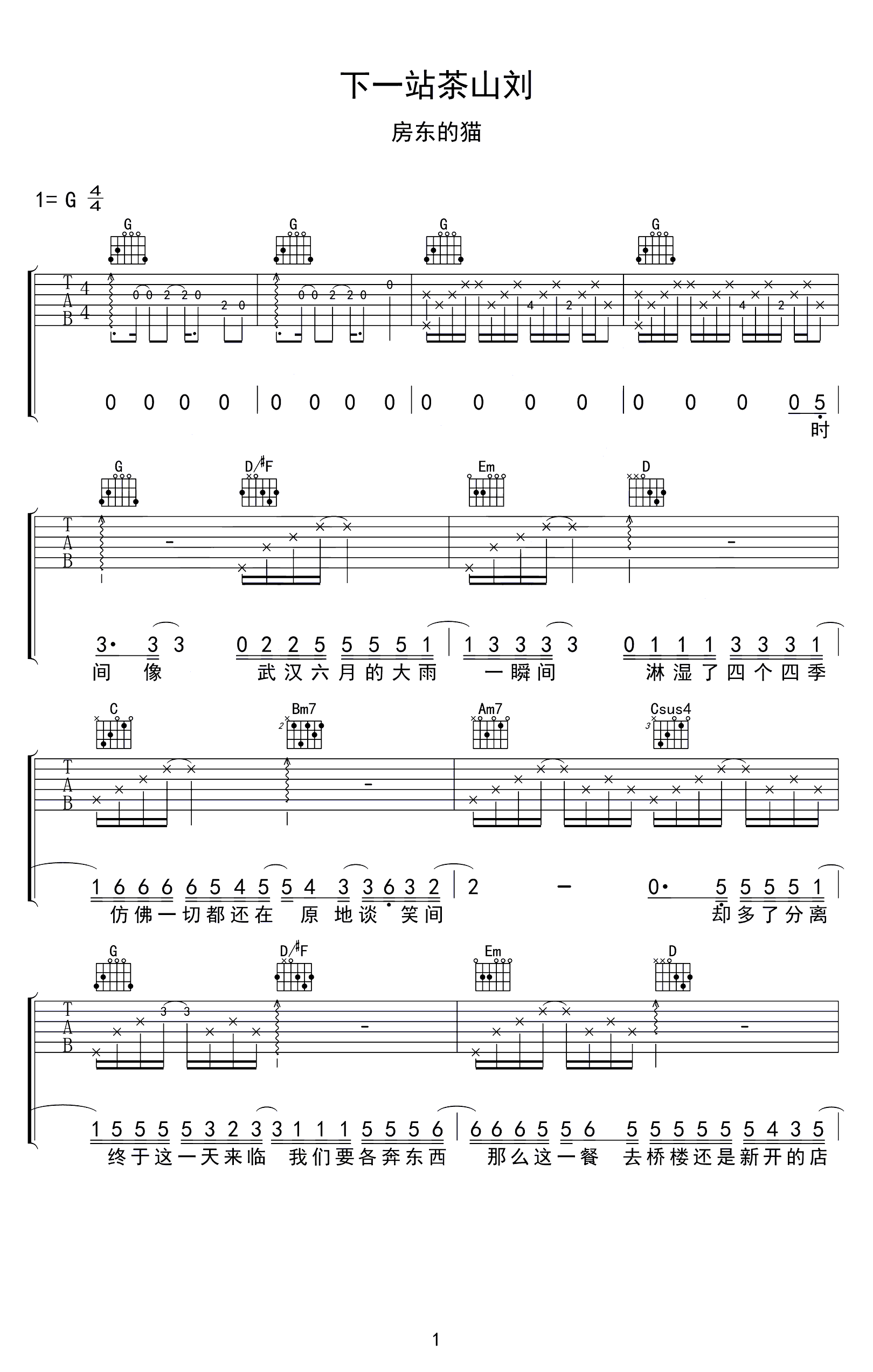 吉他谱 | 热门弹唱《下一站茶山刘》