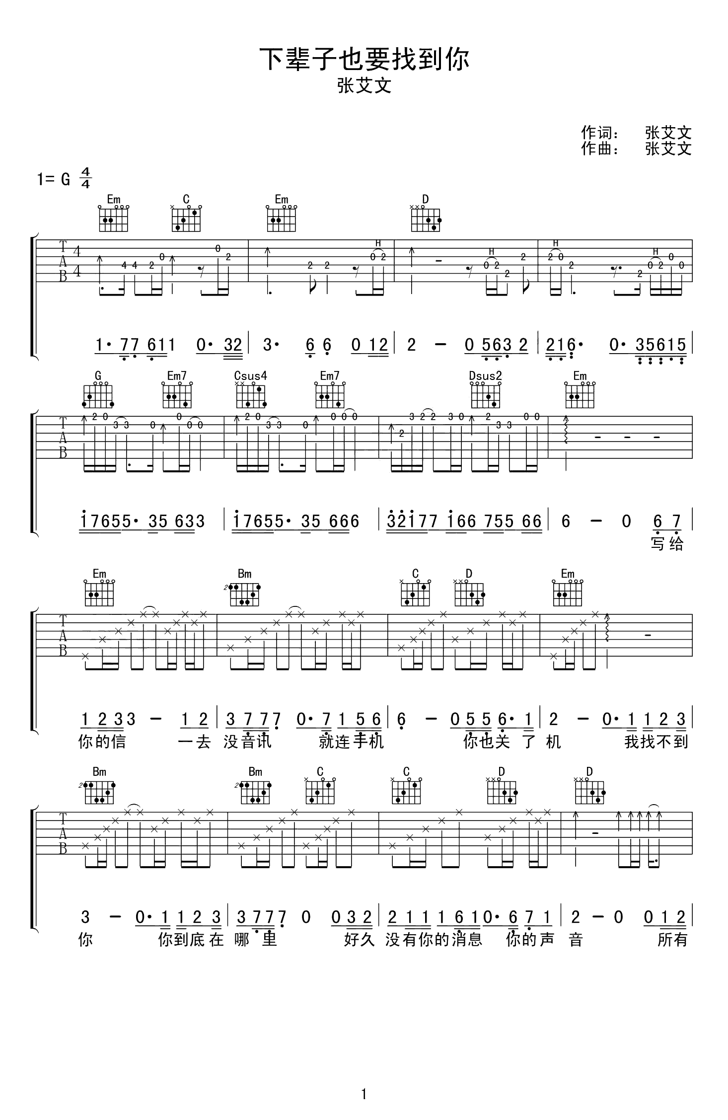 吉他谱 | 热门弹唱《下辈子也要找到你》