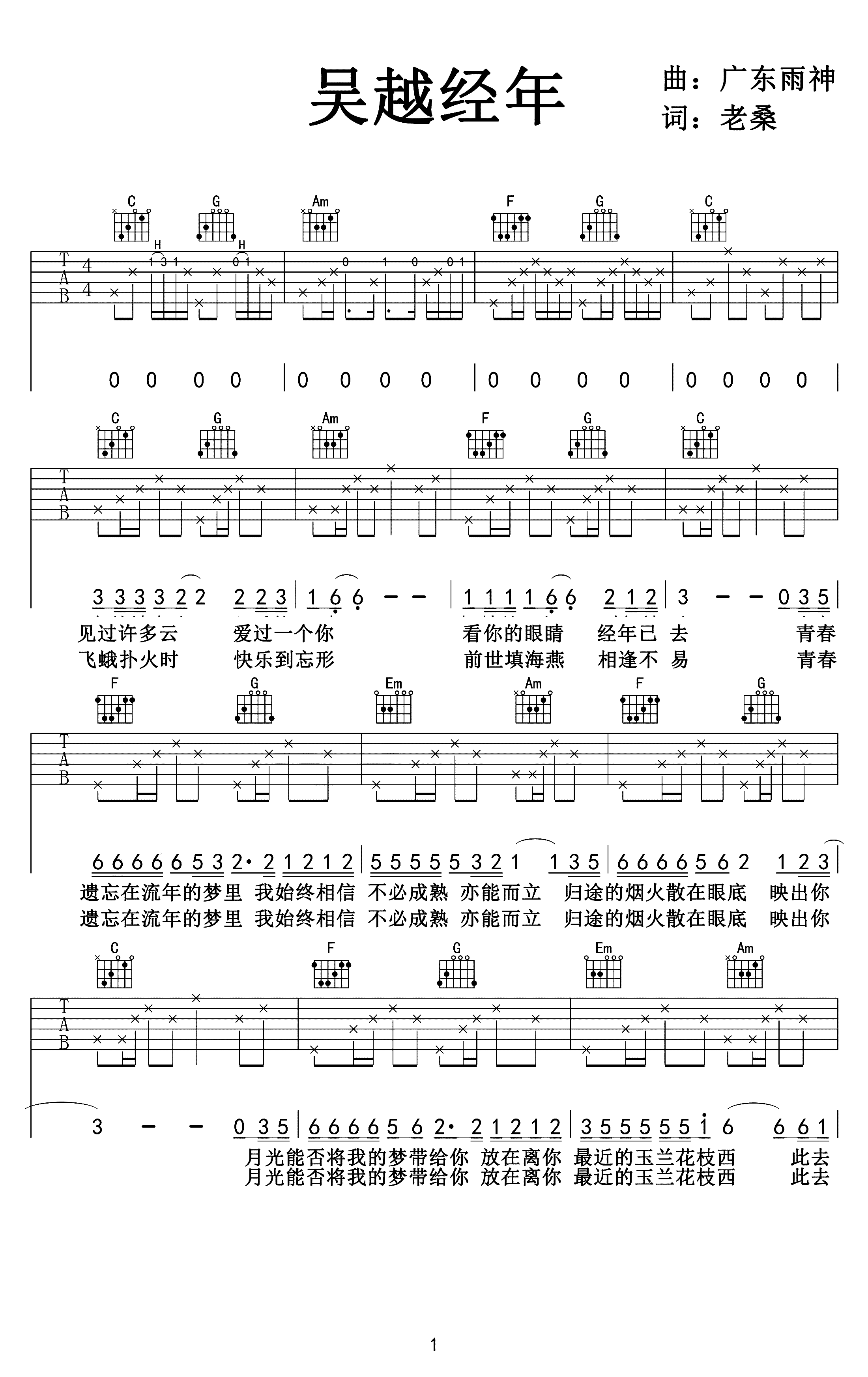 吉他谱 | 热门弹唱《吴越年轻》