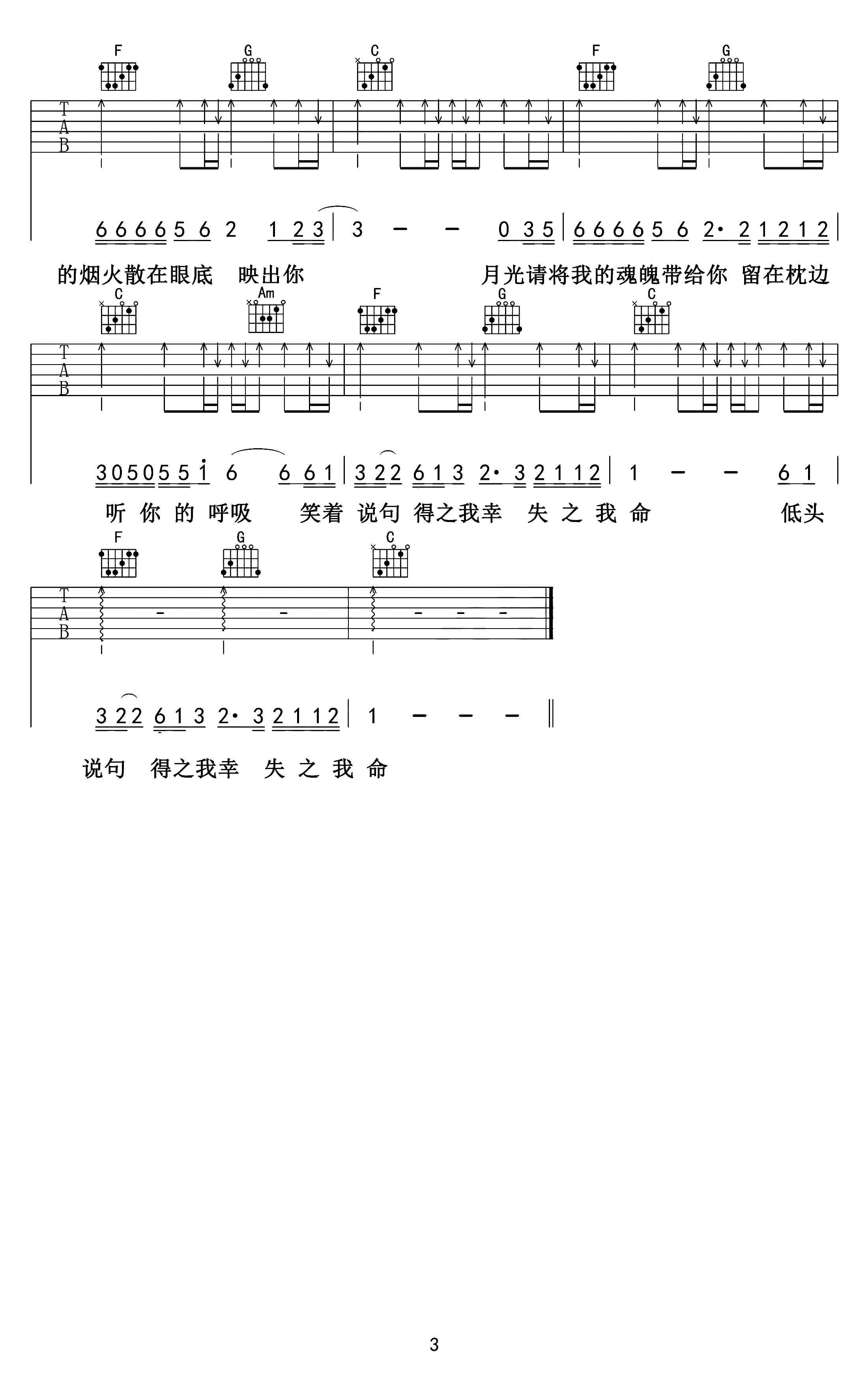 如果吉他谱