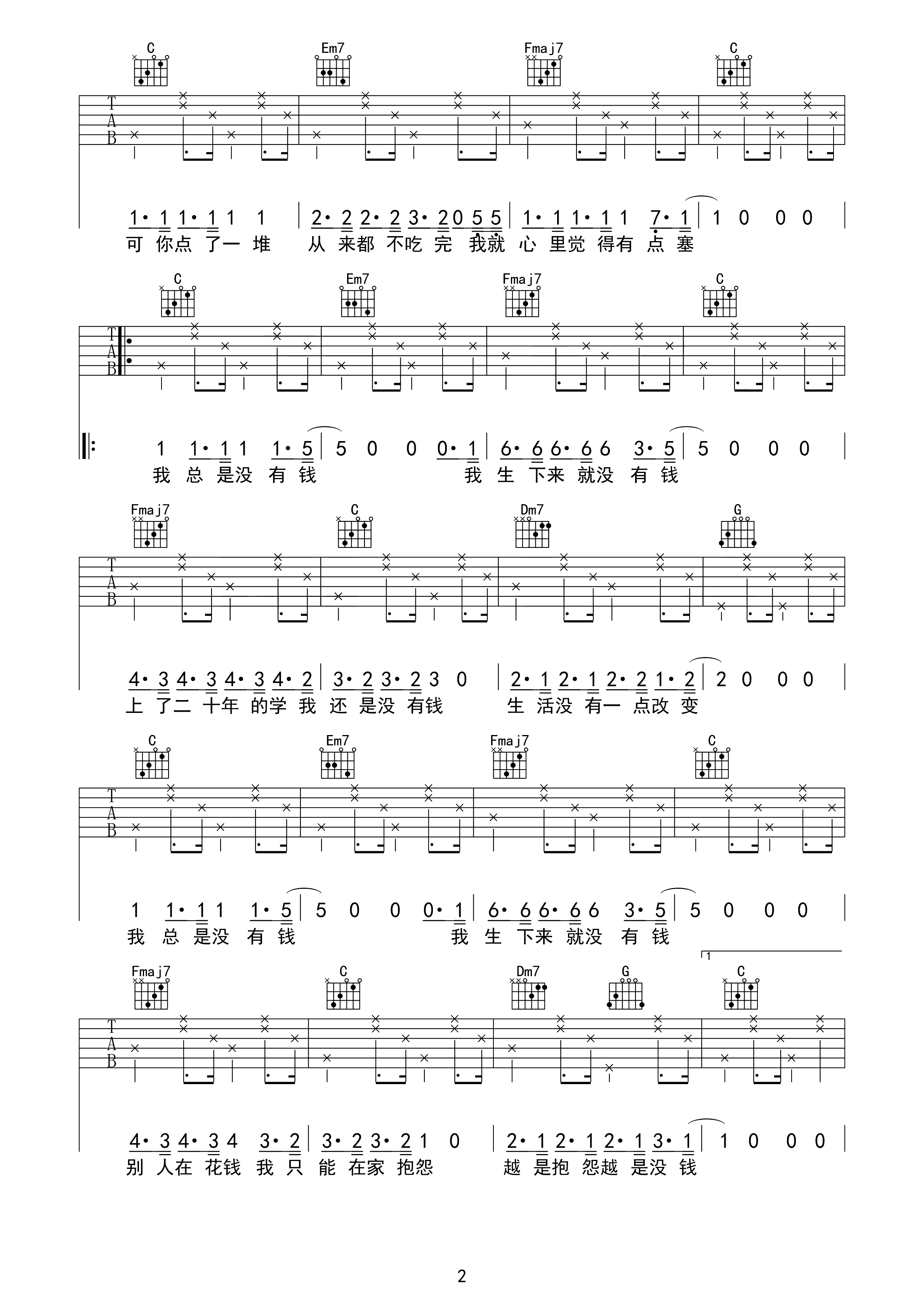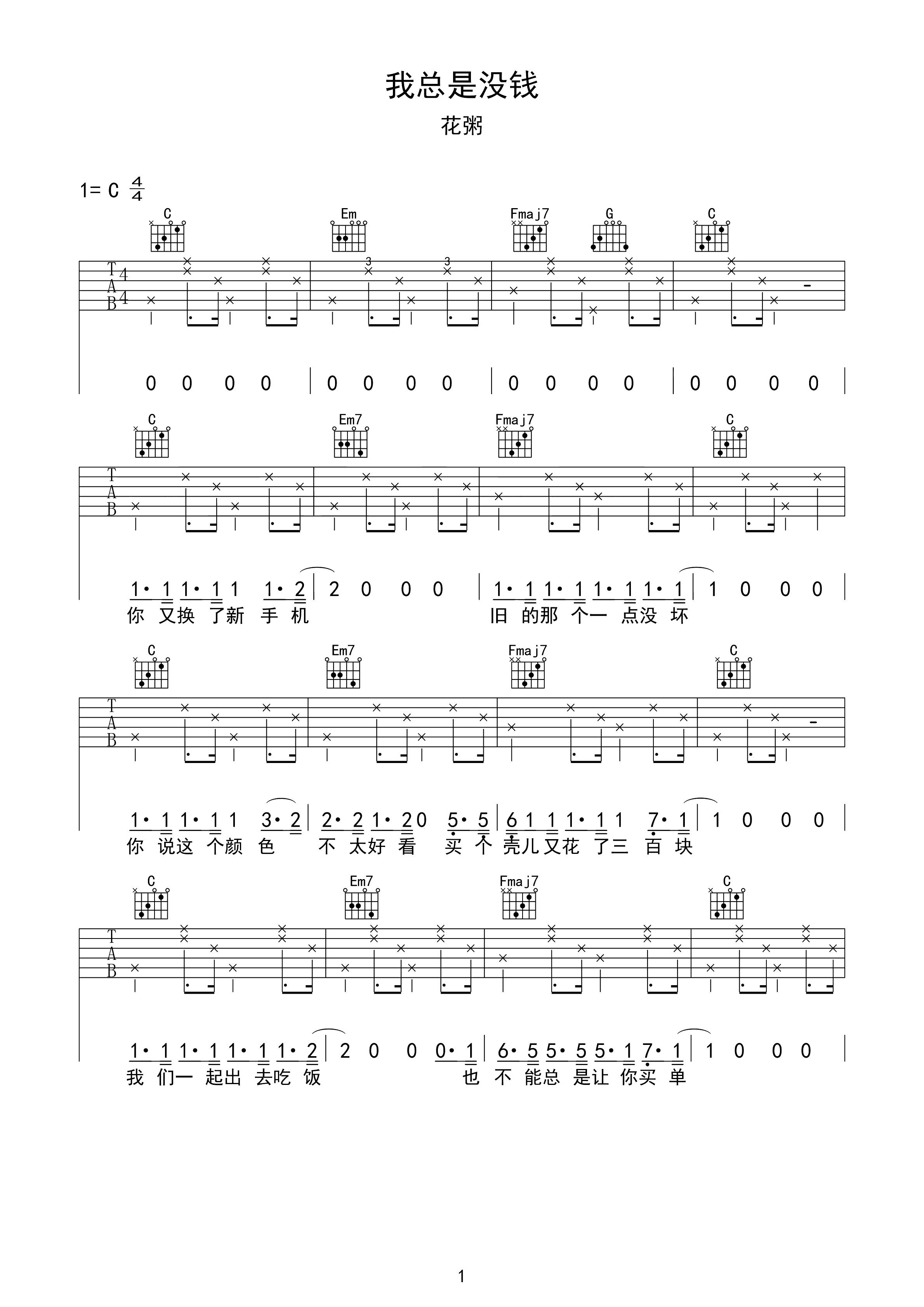 吉他谱 | 热门弹唱《我总是没钱》
