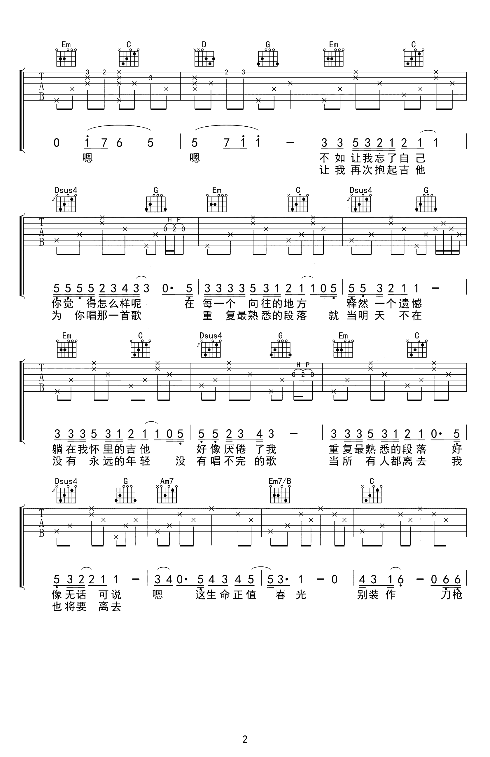 云上的日子吉他谱_李健_G调指法_弹唱谱