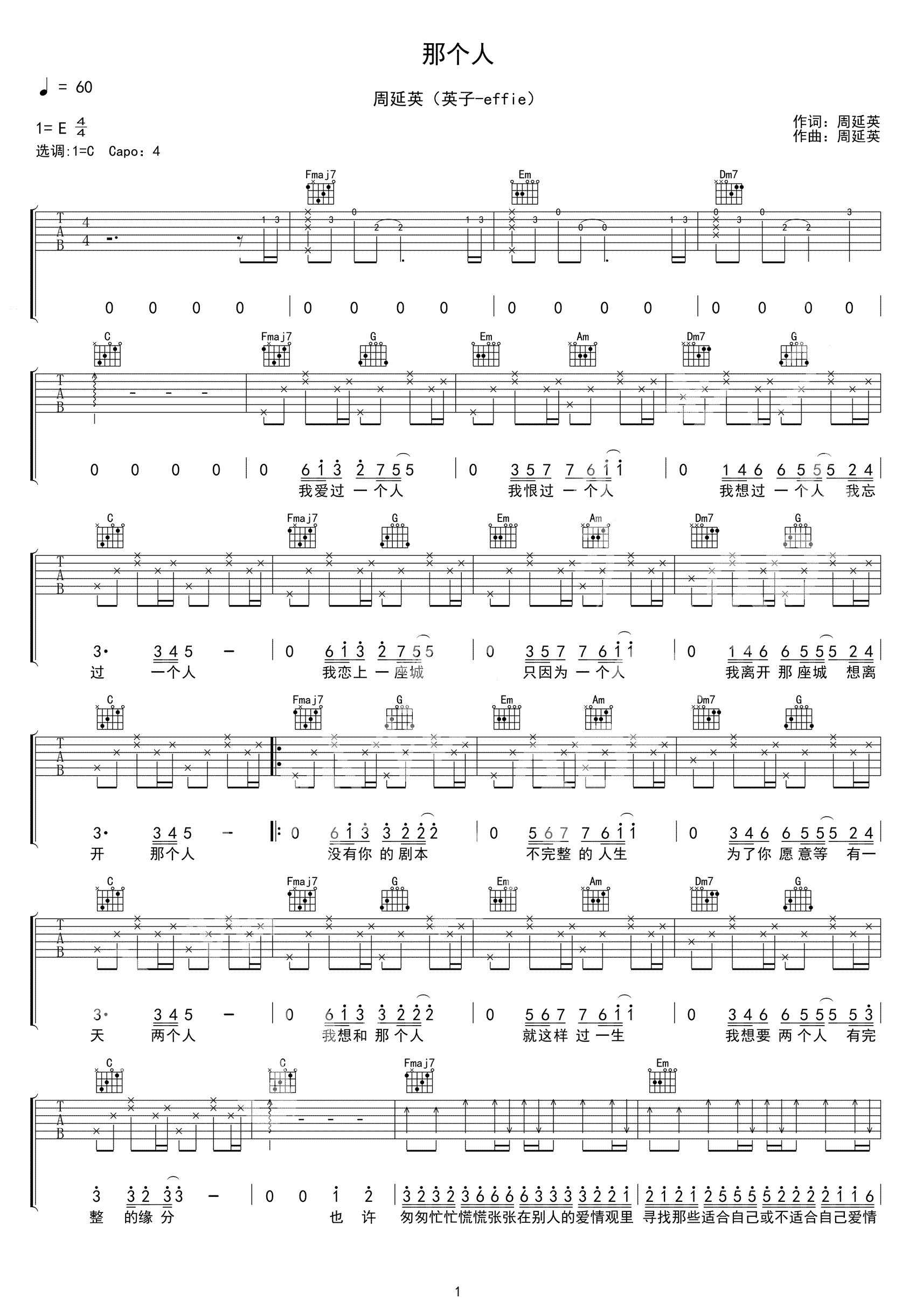 《我要你》吉他谱 任素汐 A调带前奏 高
