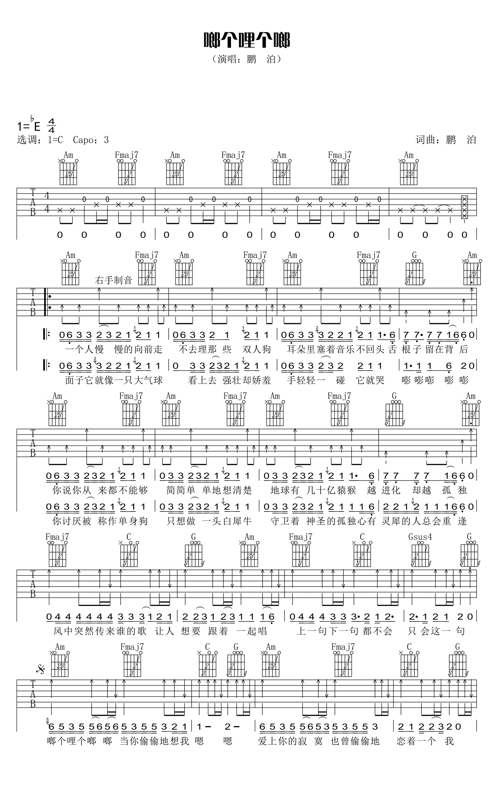 吉他谱 | 热门弹唱《啷个哩个啷》