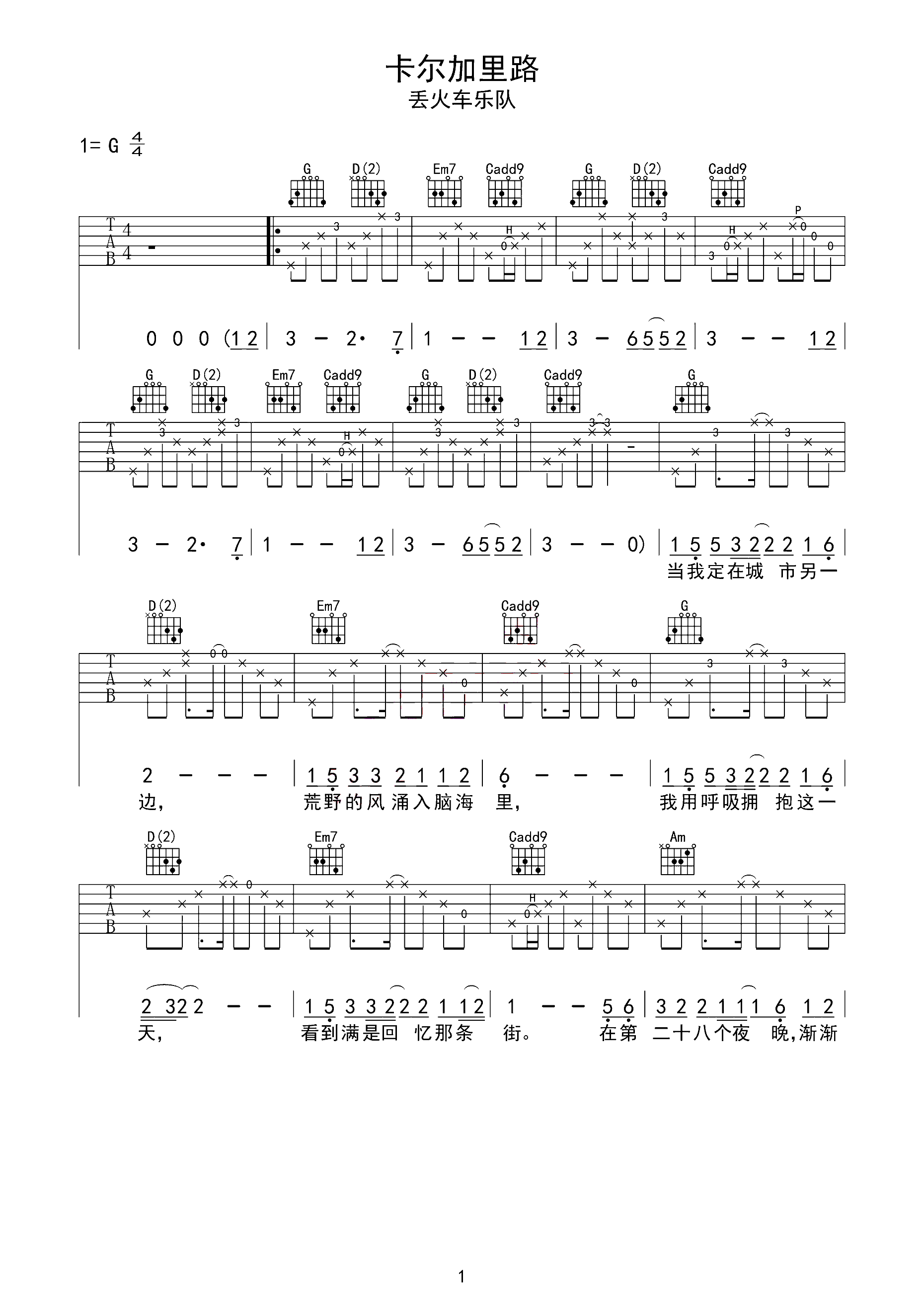 胸大的姑娘吉他谱 留声玩具 六线谱高清