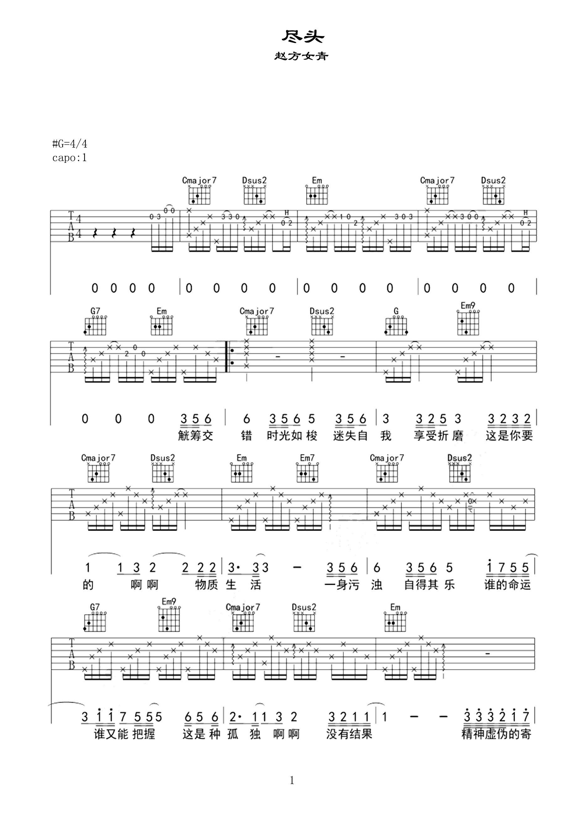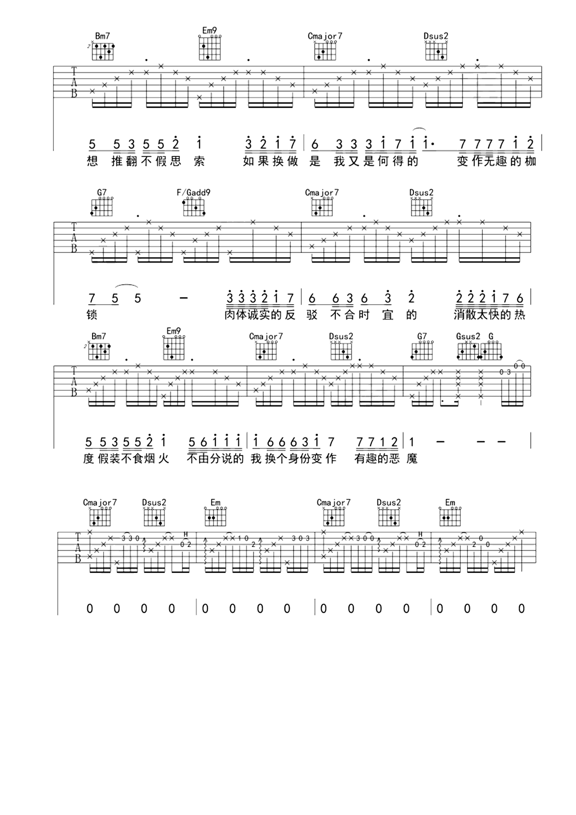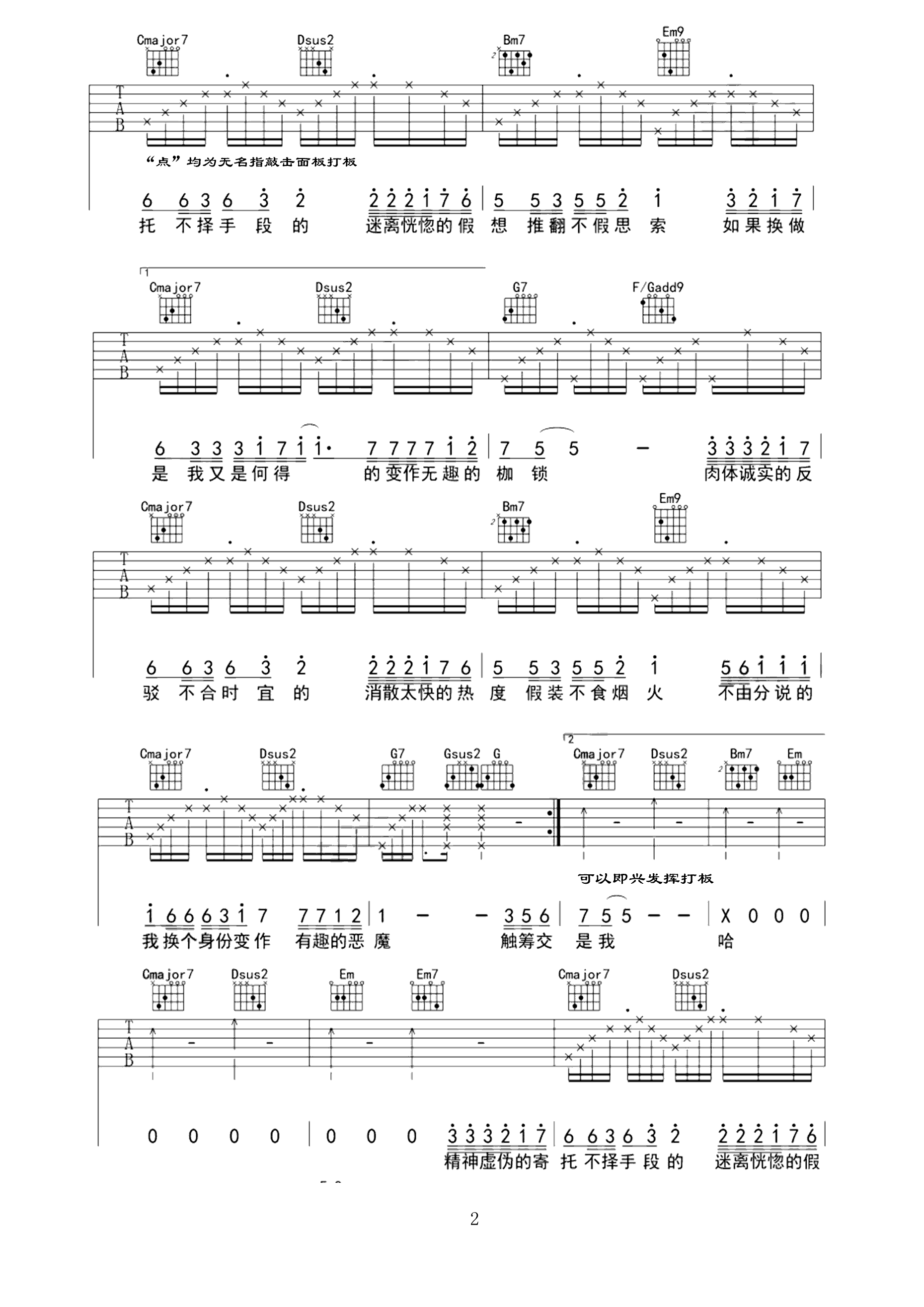 无羁指弹谱_陈情令片尾曲_吉他独奏谱_