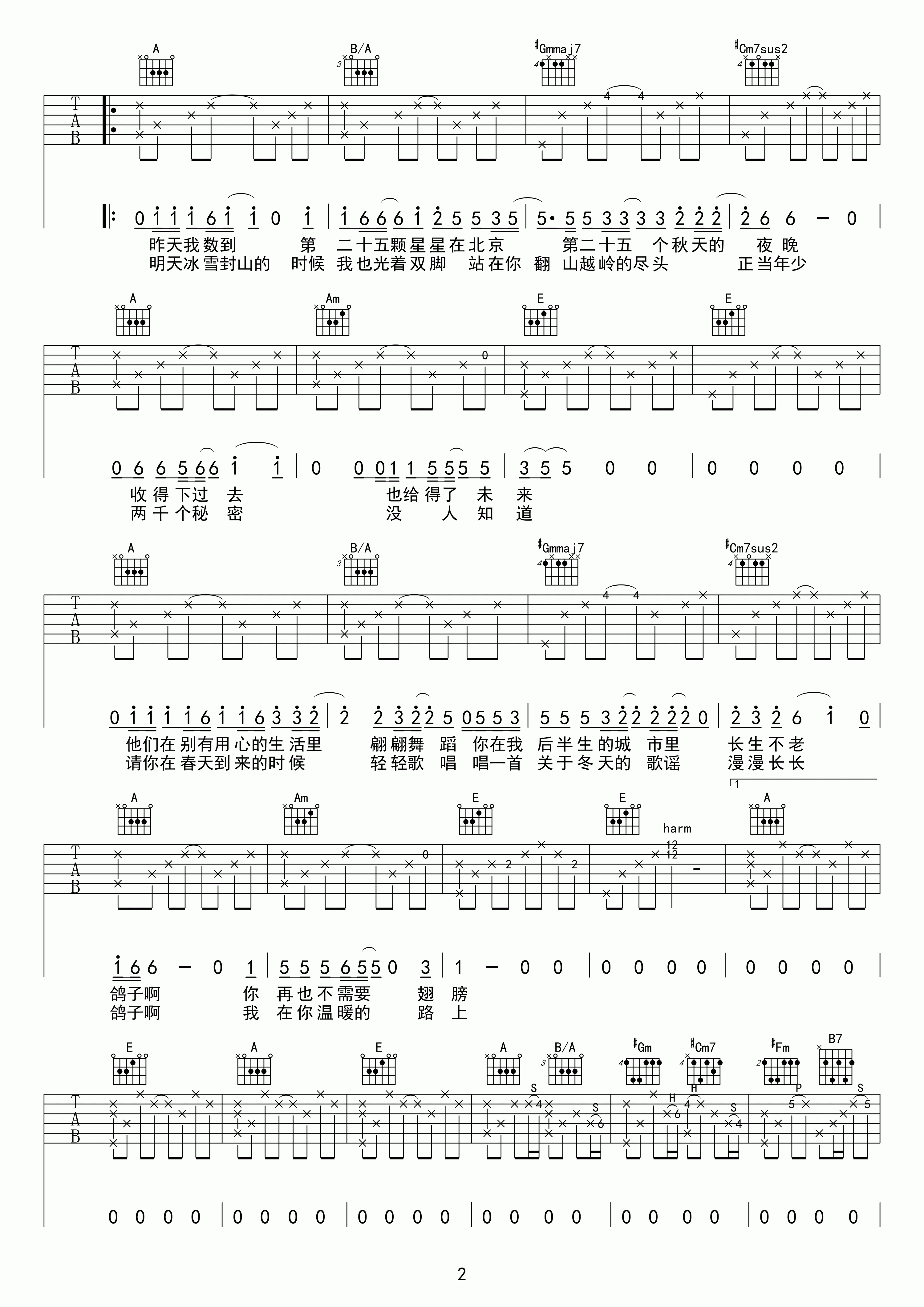 啷个哩个啷吉他谱 C调弹唱谱 鹏泊 高清