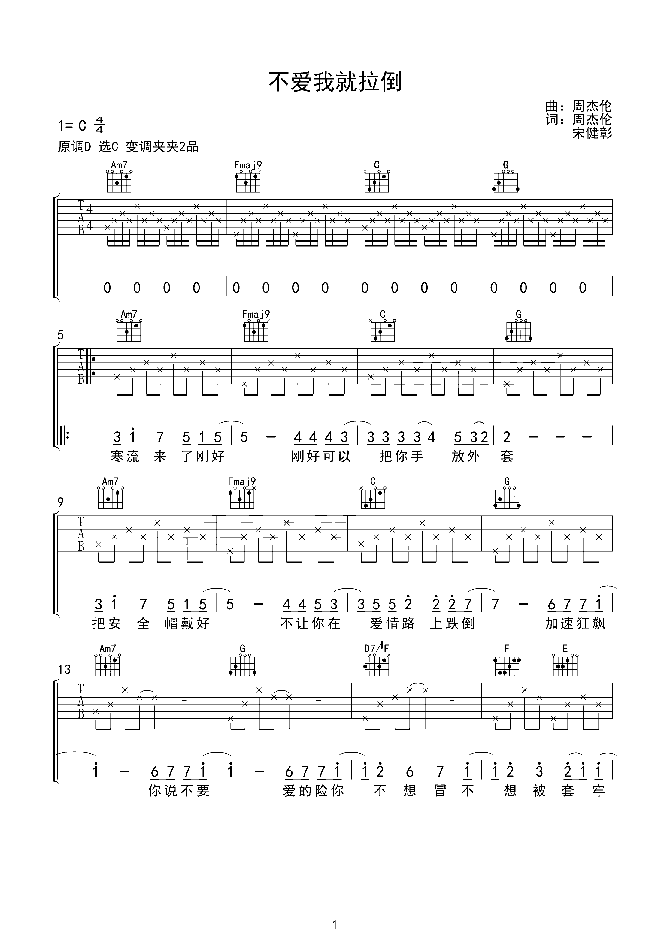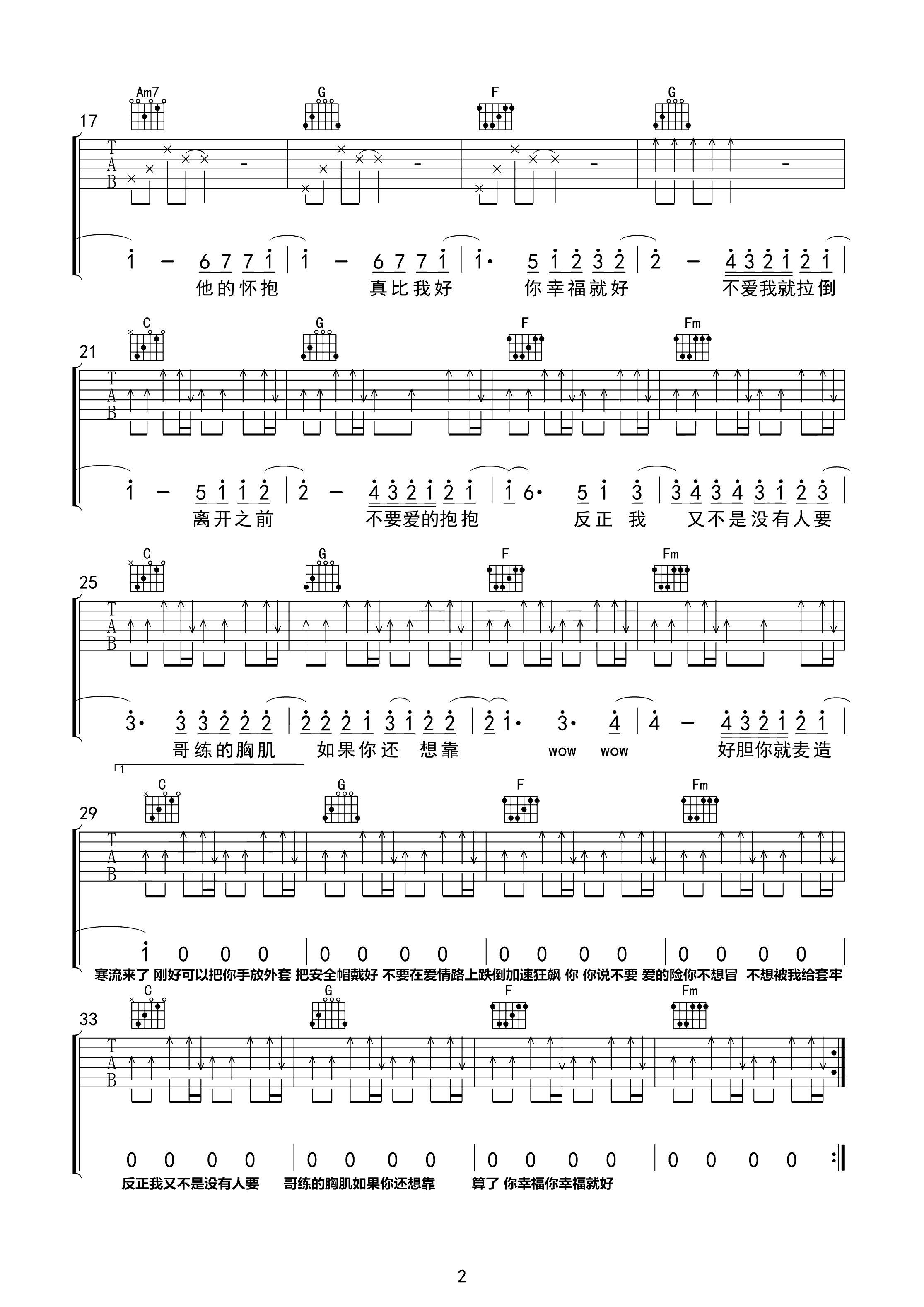 吉他谱 | 热门弹唱《不爱我就拉倒》