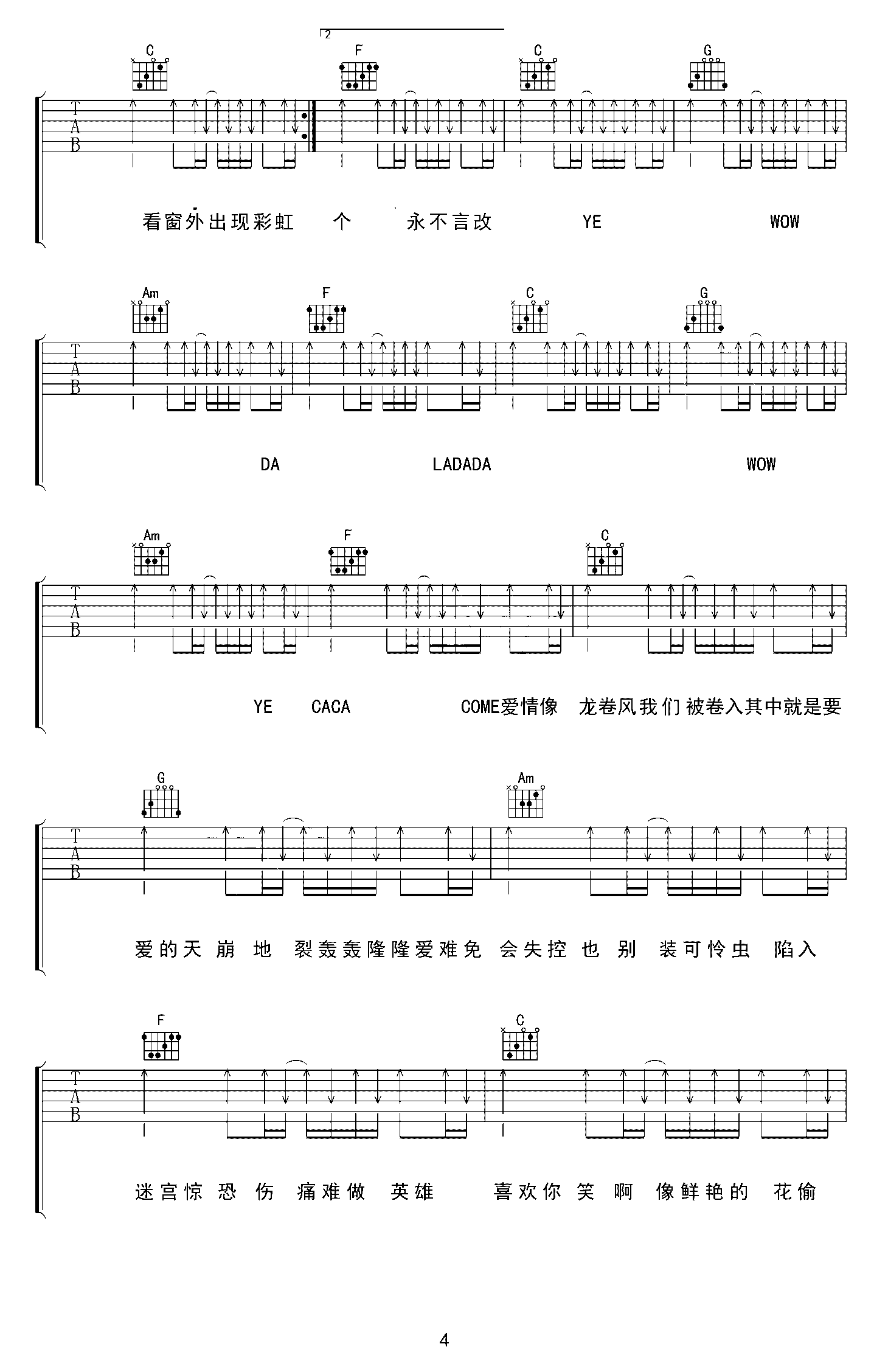 下雪哈尔滨吉他谱_高进_C调_高清图片谱