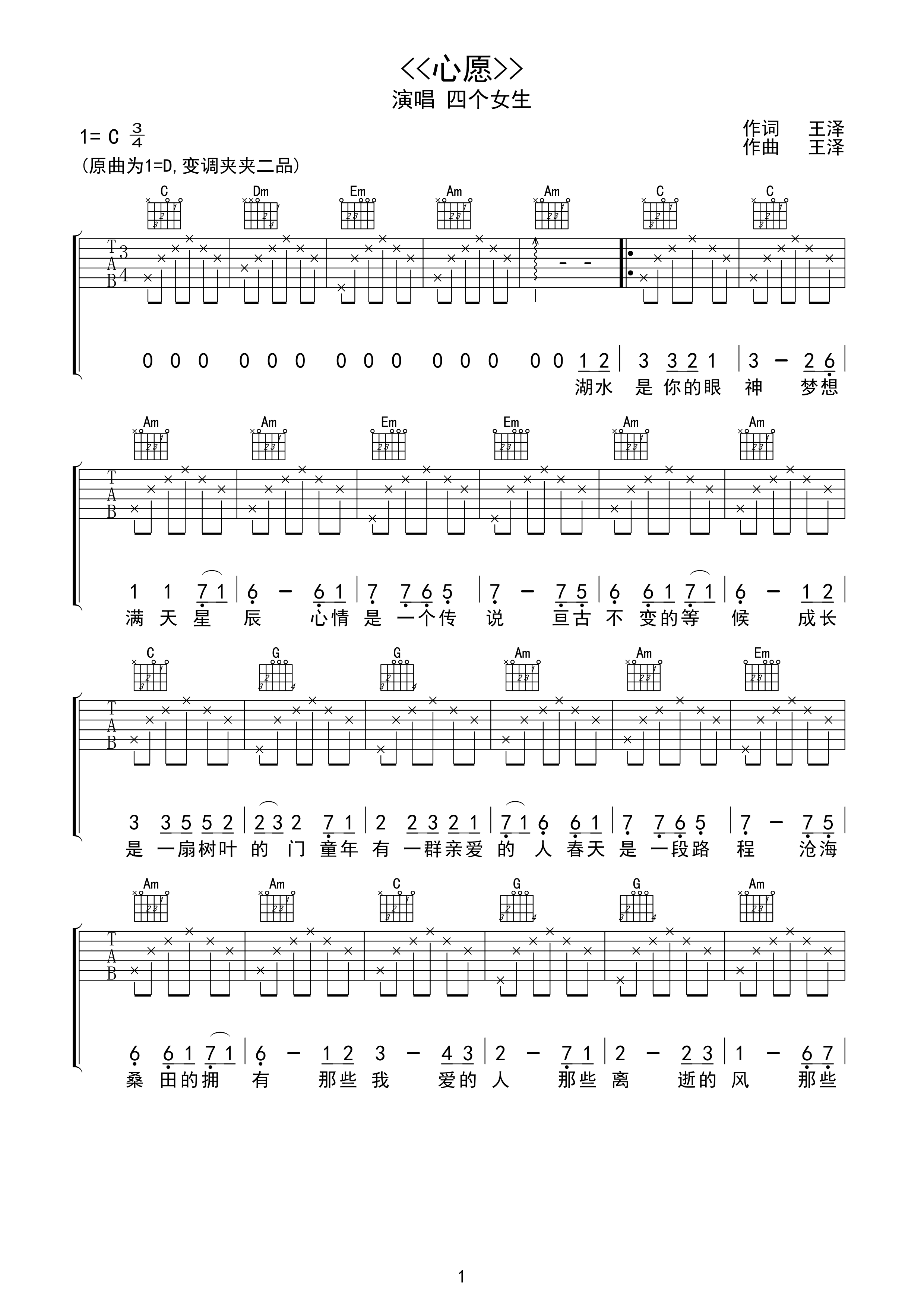 想想念念吉他谱_皮卡丘多多_C调原版_弹
