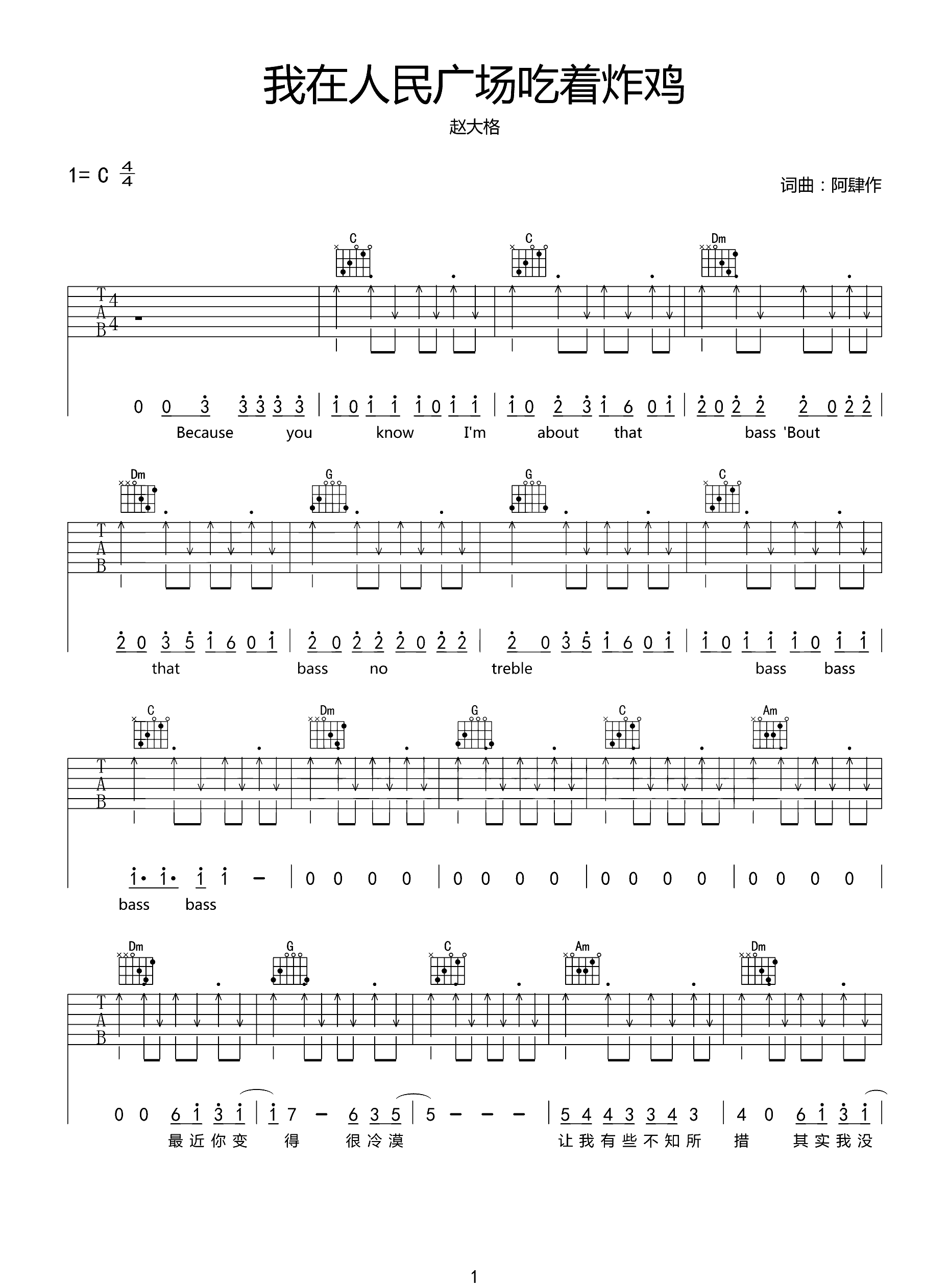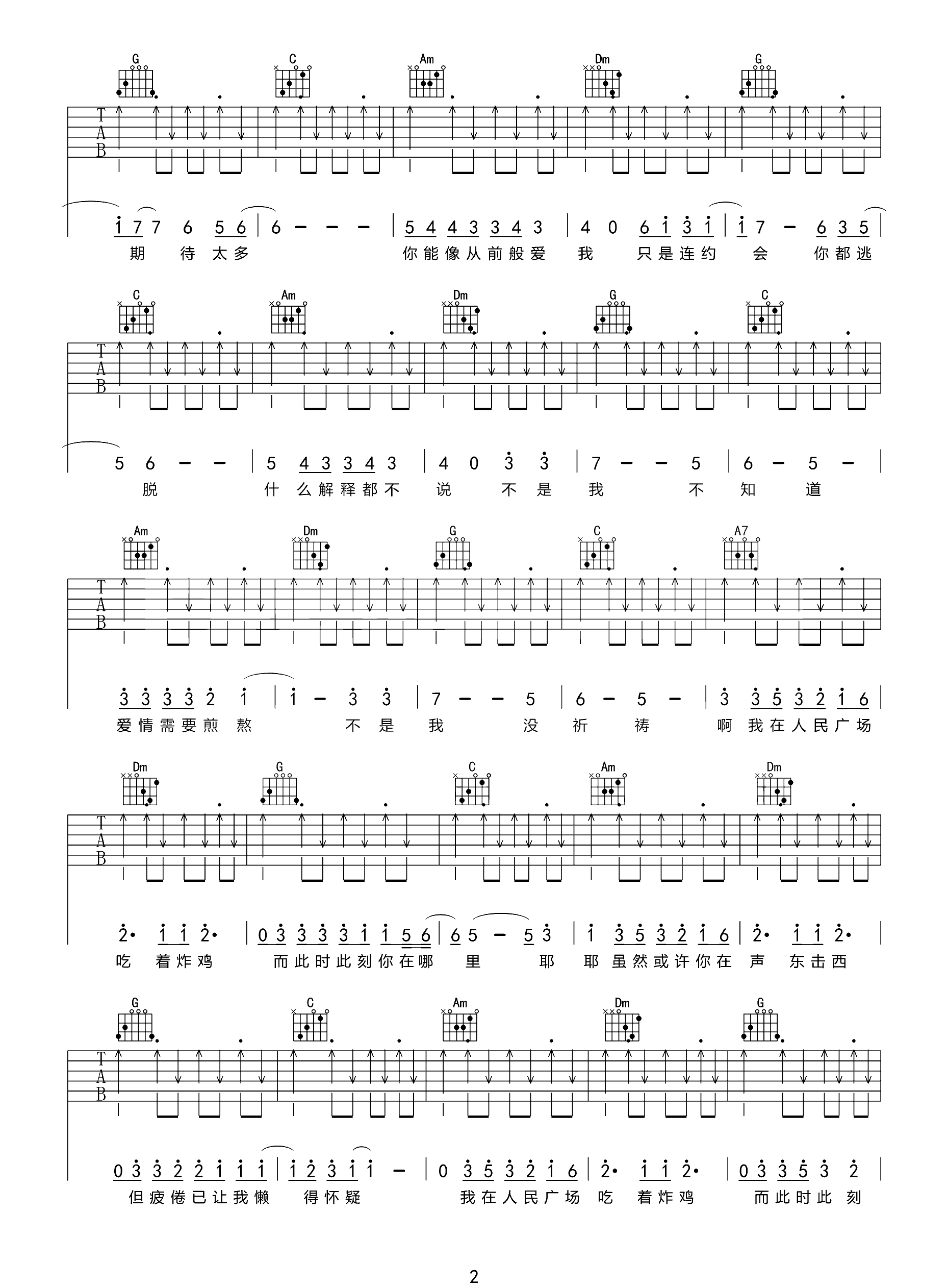 吉他谱 | 热门弹唱《我在人民广场吃炸鸡》