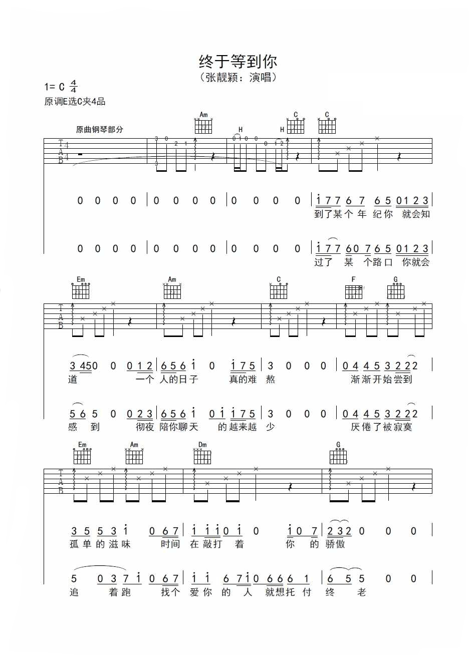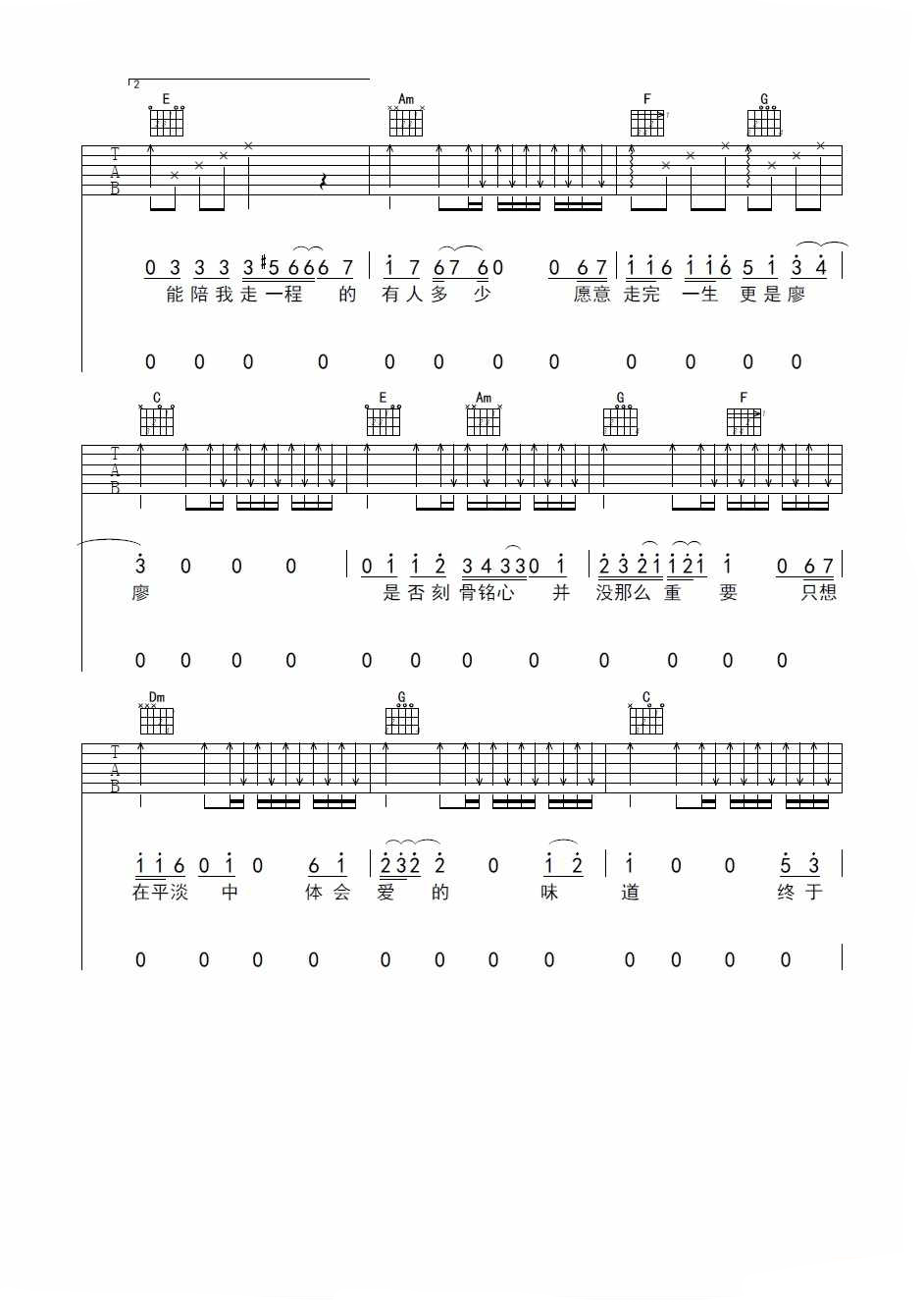平凡之路吉他谱_朴树_G调指法_弹唱六线