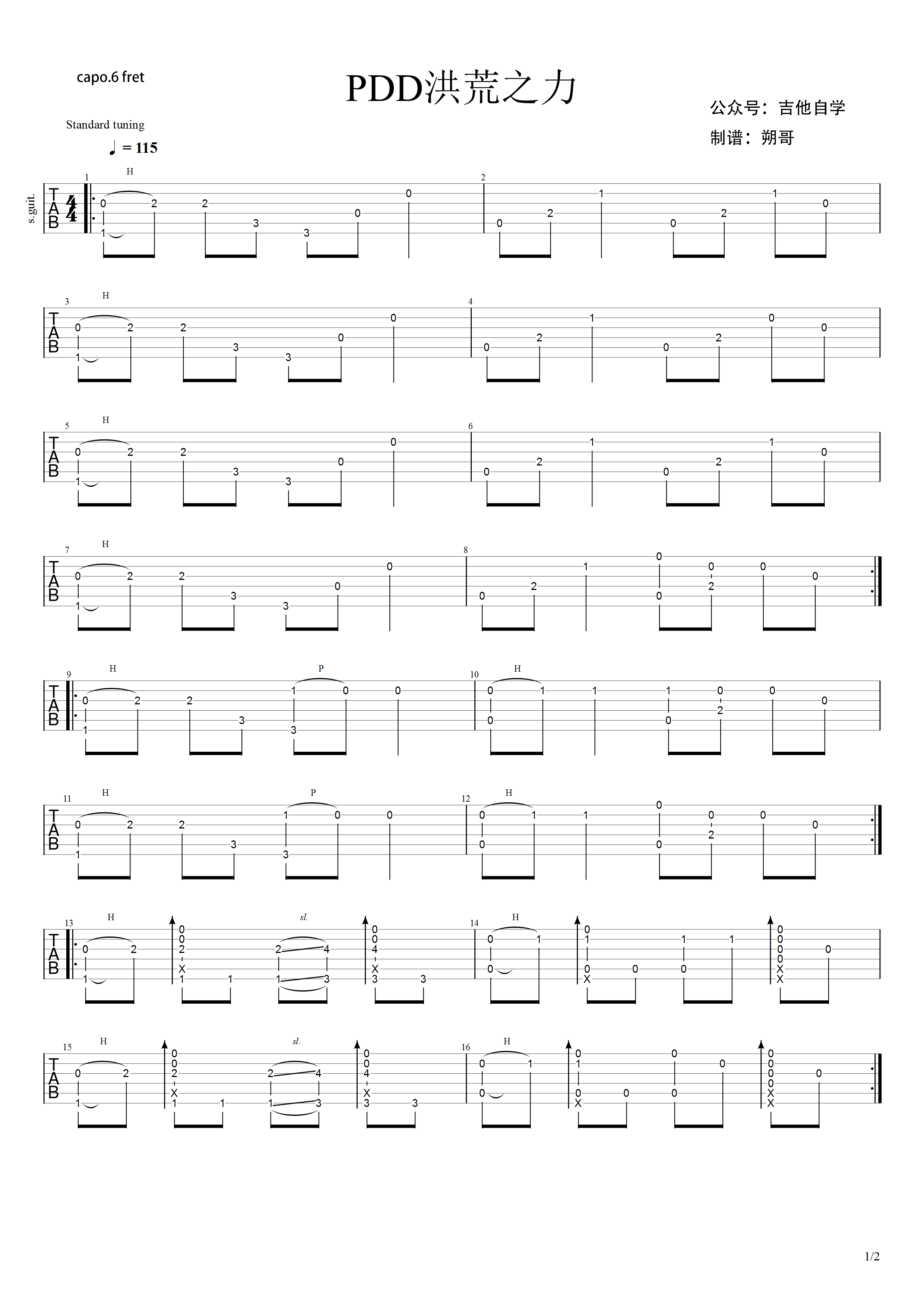 吉他谱 | 经典指弹《PDD洪荒之力》