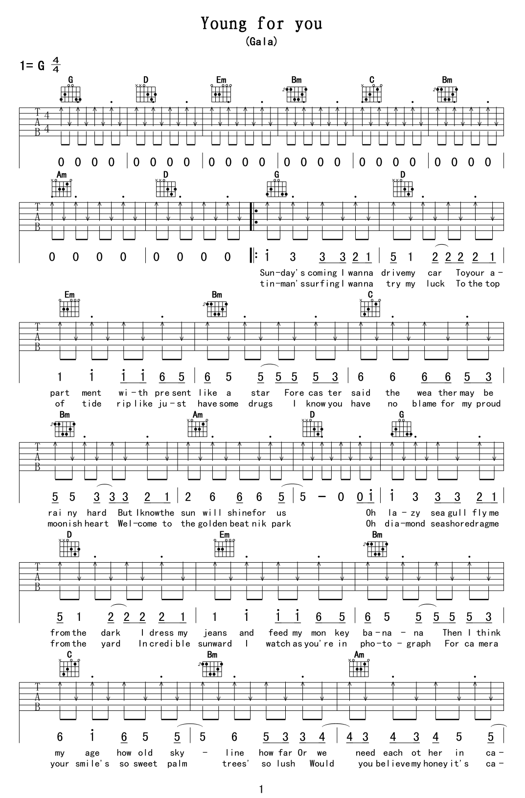 一天一万年(吉他谱)
