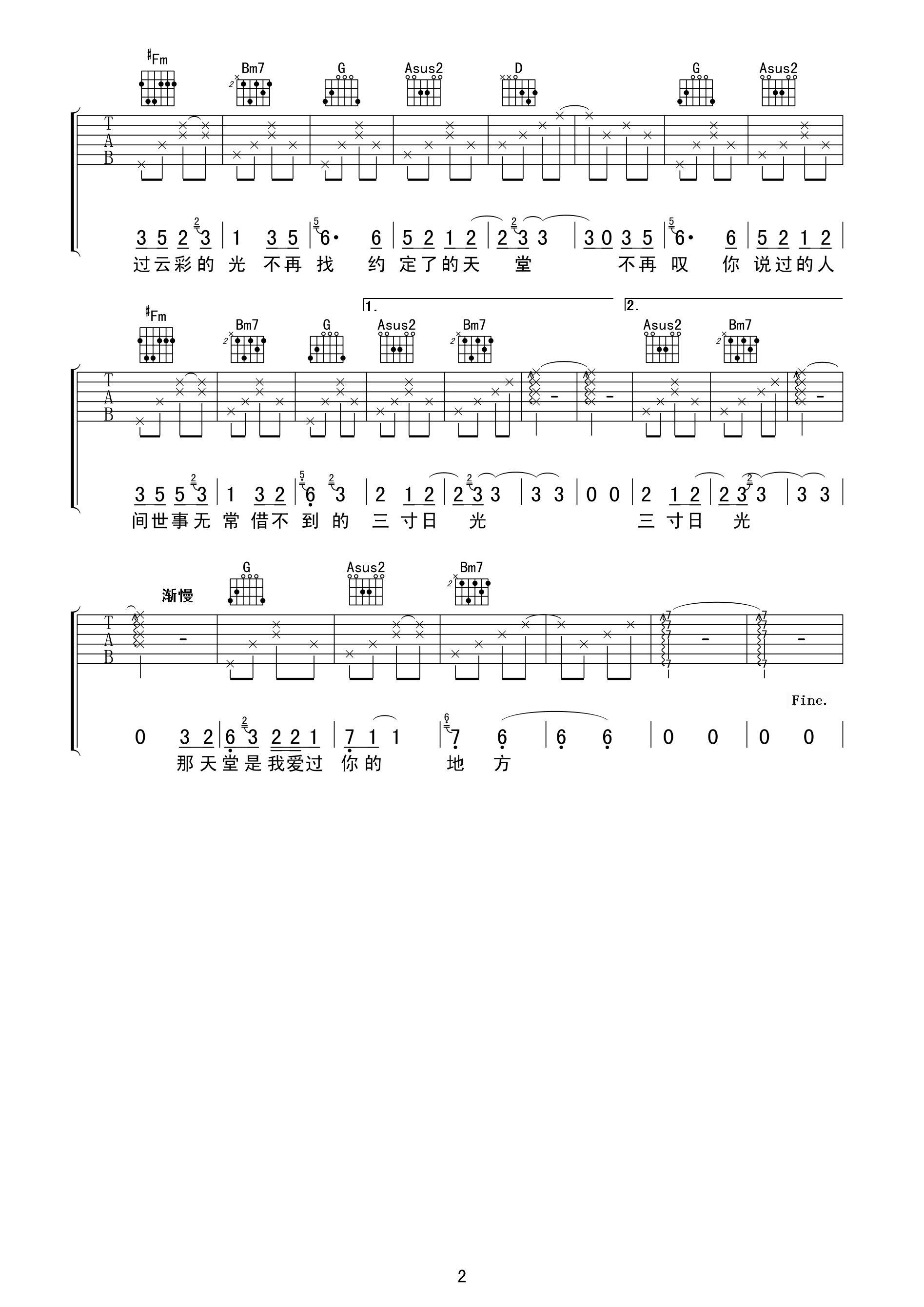 吉他谱 | 热门弹唱《三寸天堂》