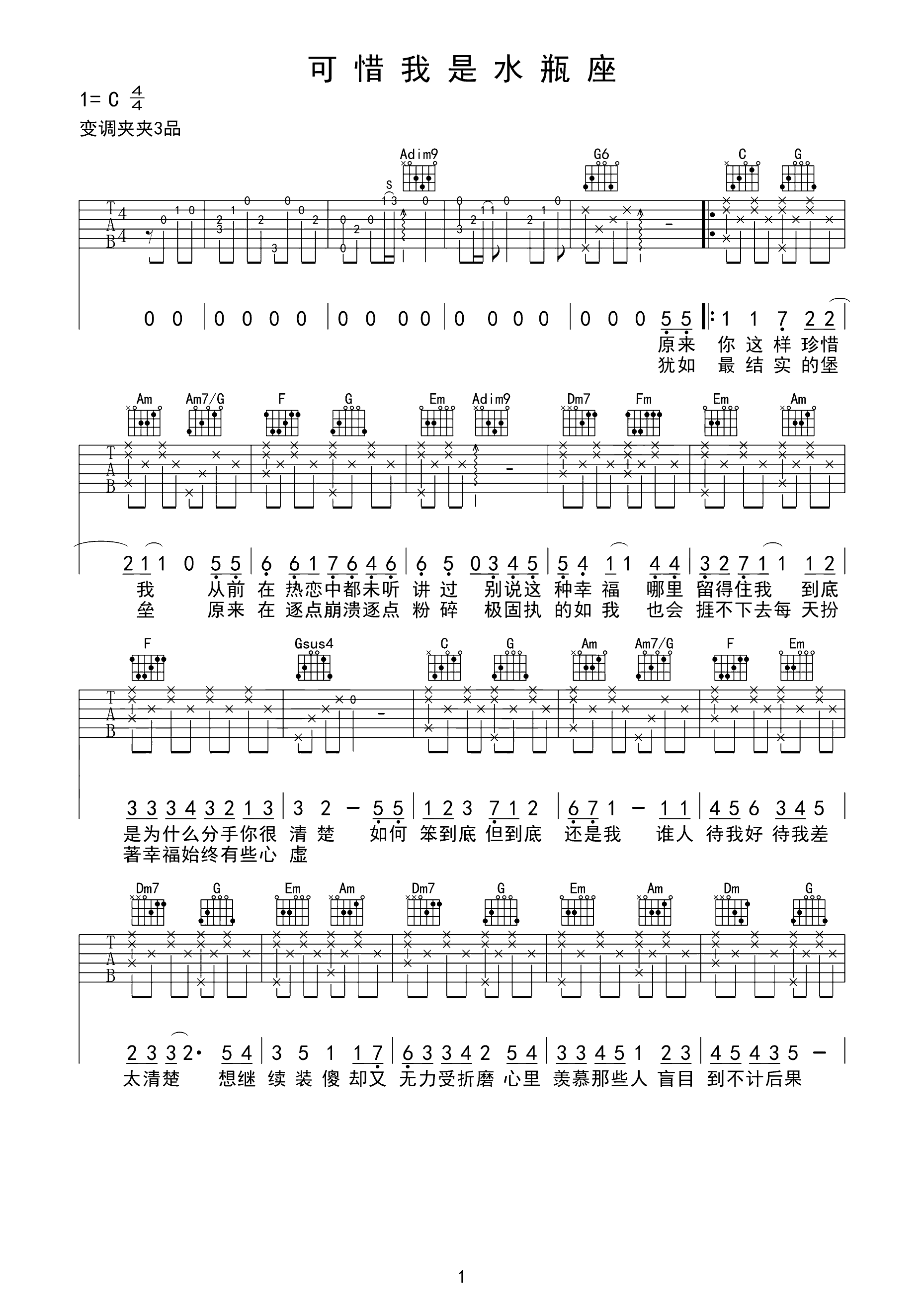 吉他谱 | 热门弹唱《可惜我是水瓶座》