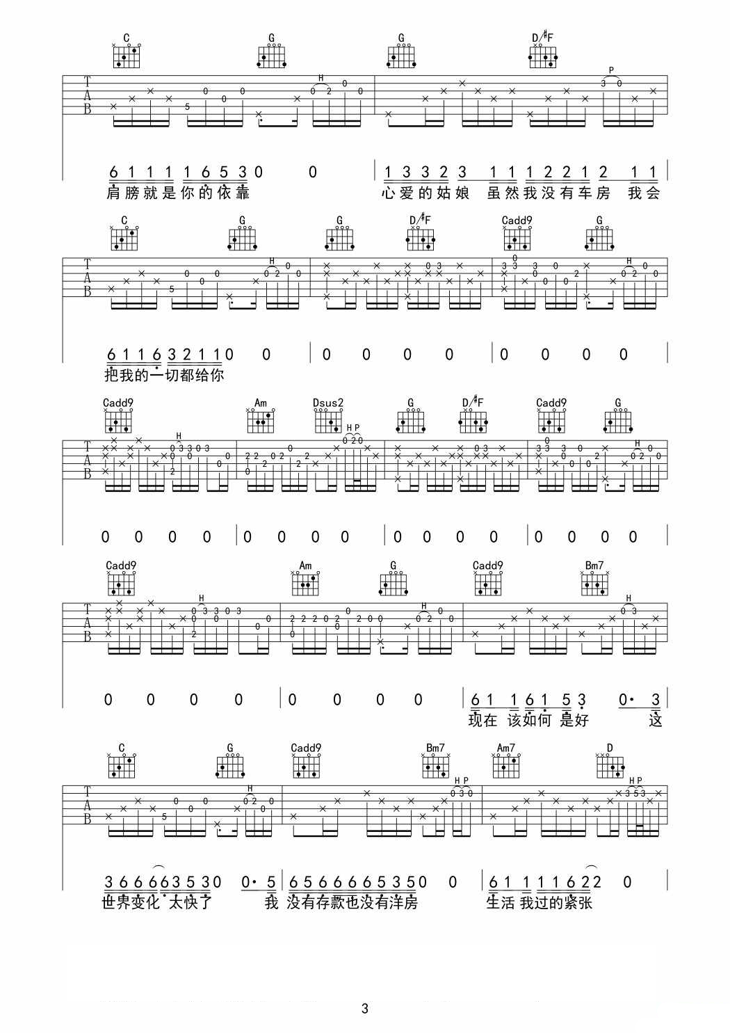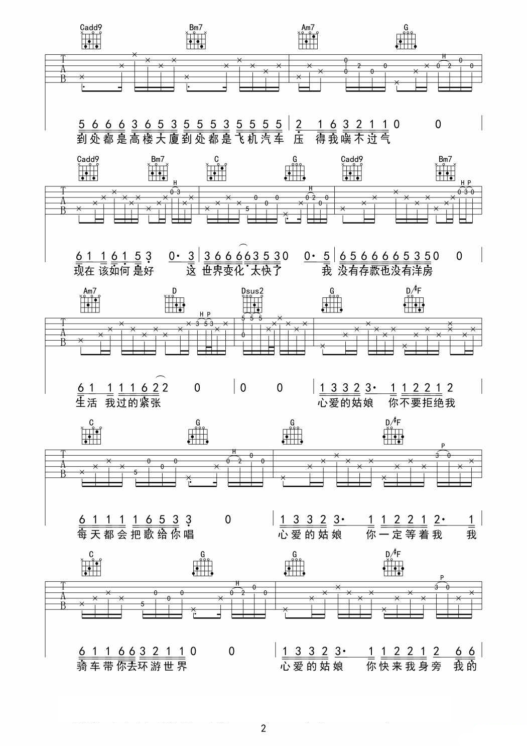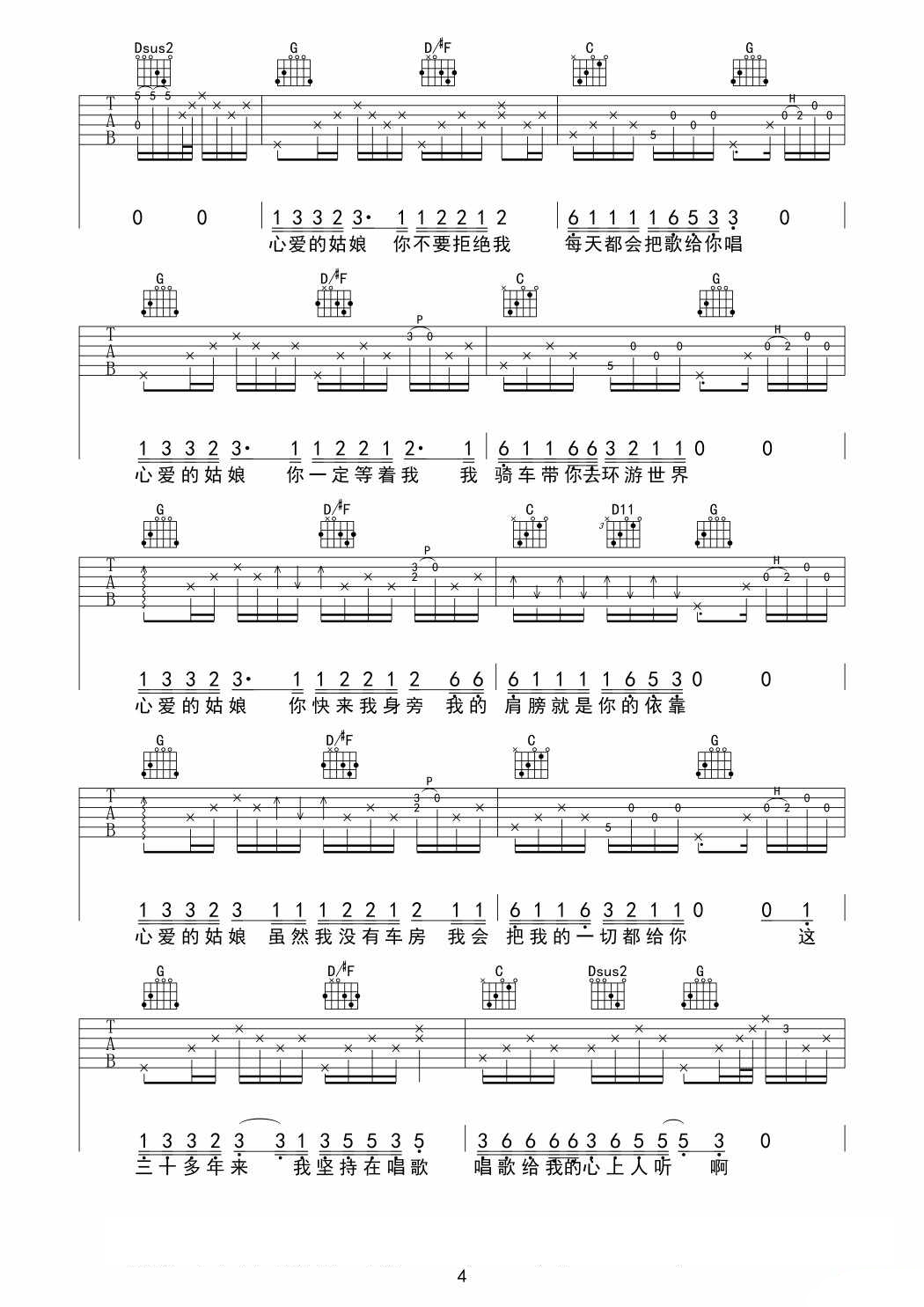 姑娘弹唱谱吉他谱