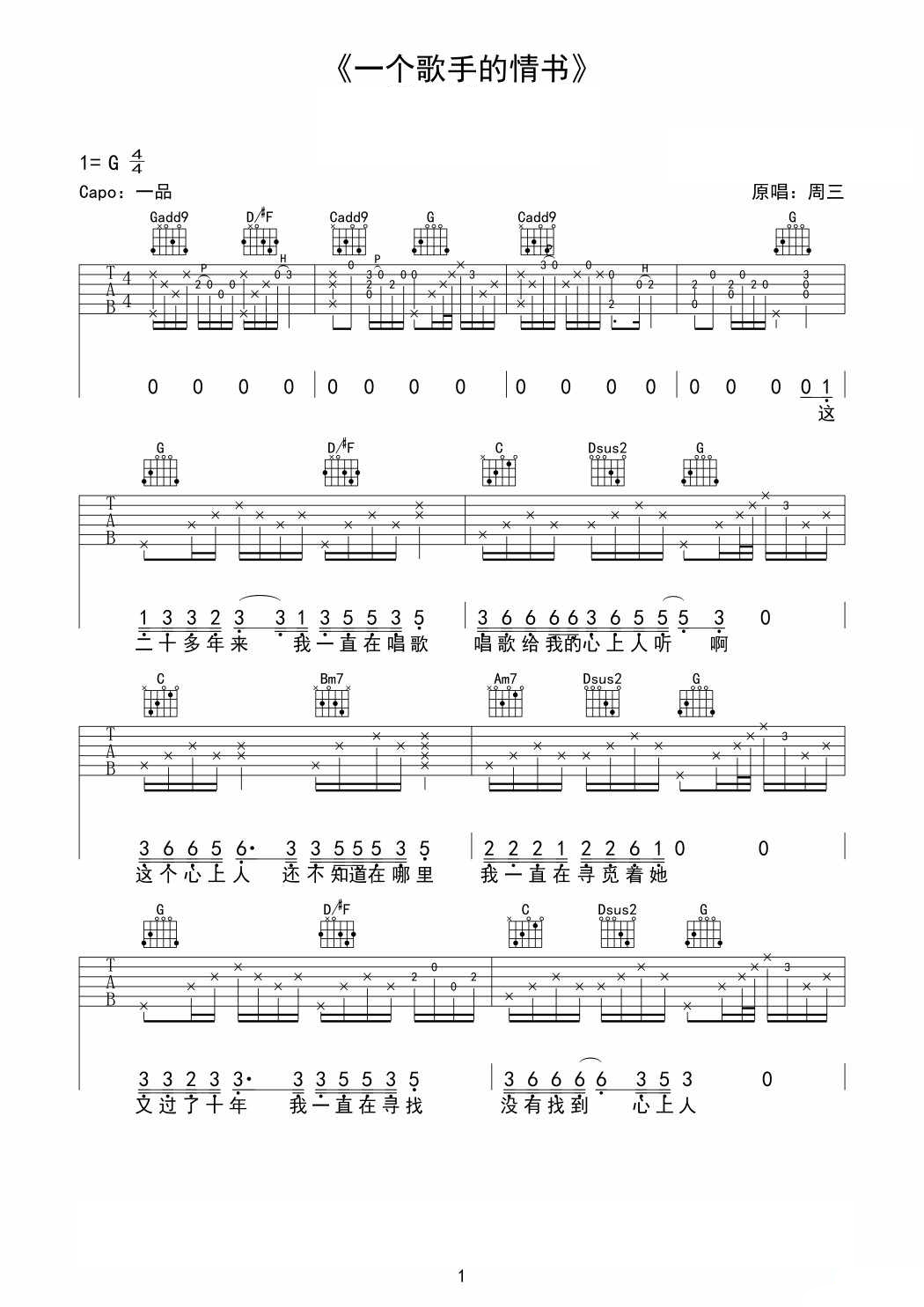 吉他谱 | 热门弹唱《一个歌手的情书》