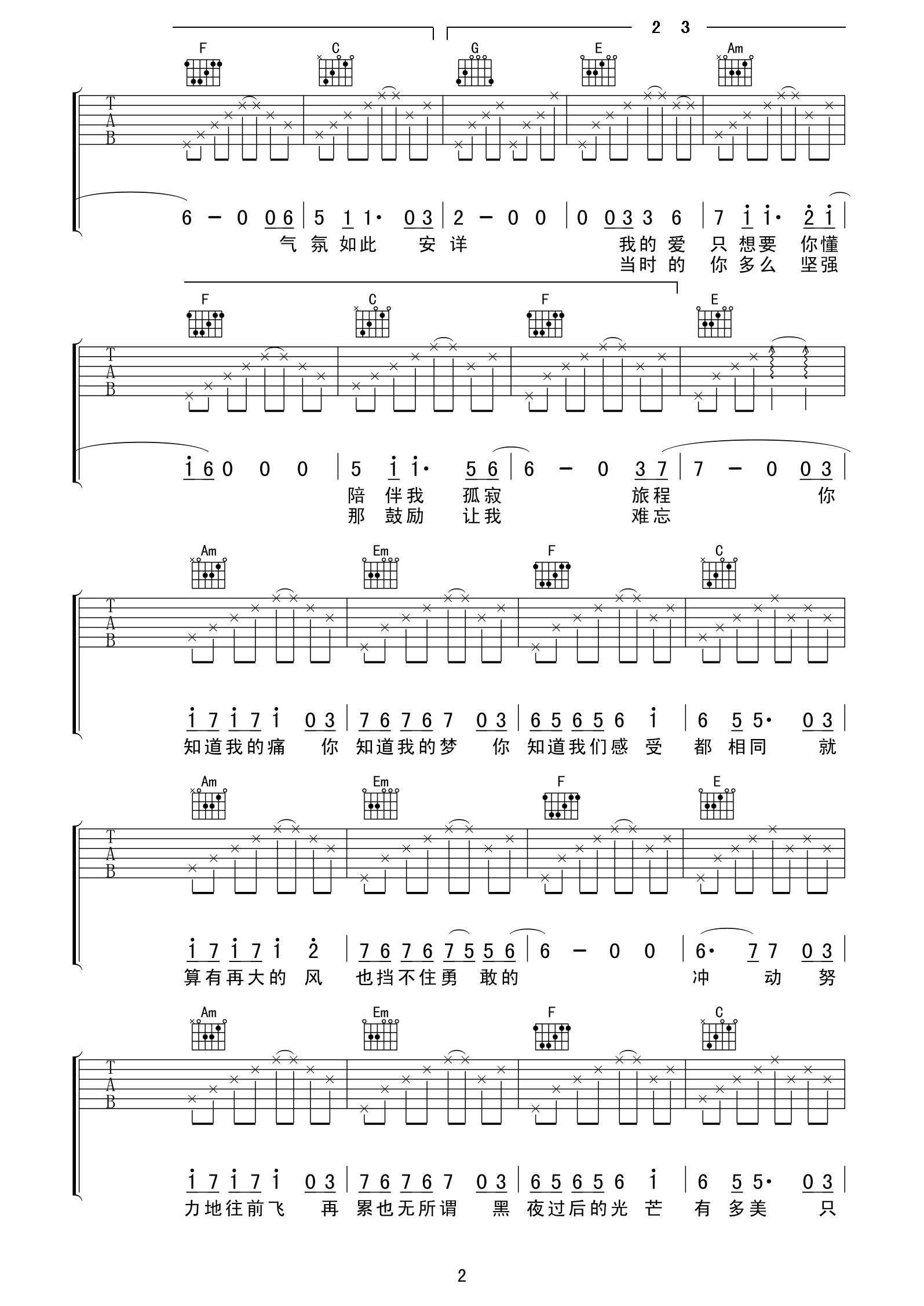 后来吉他谱 C调精华版 刘若英 高清弹唱