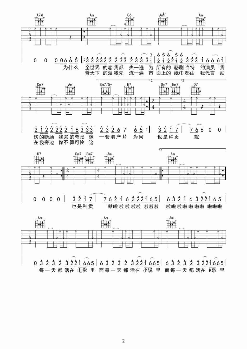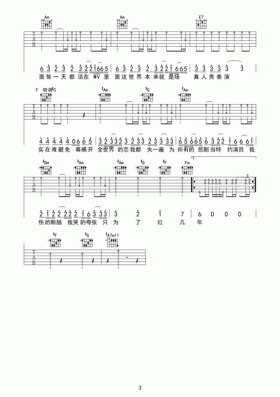 一万次悲伤吉他谱 逃跑计划 六线谱 高