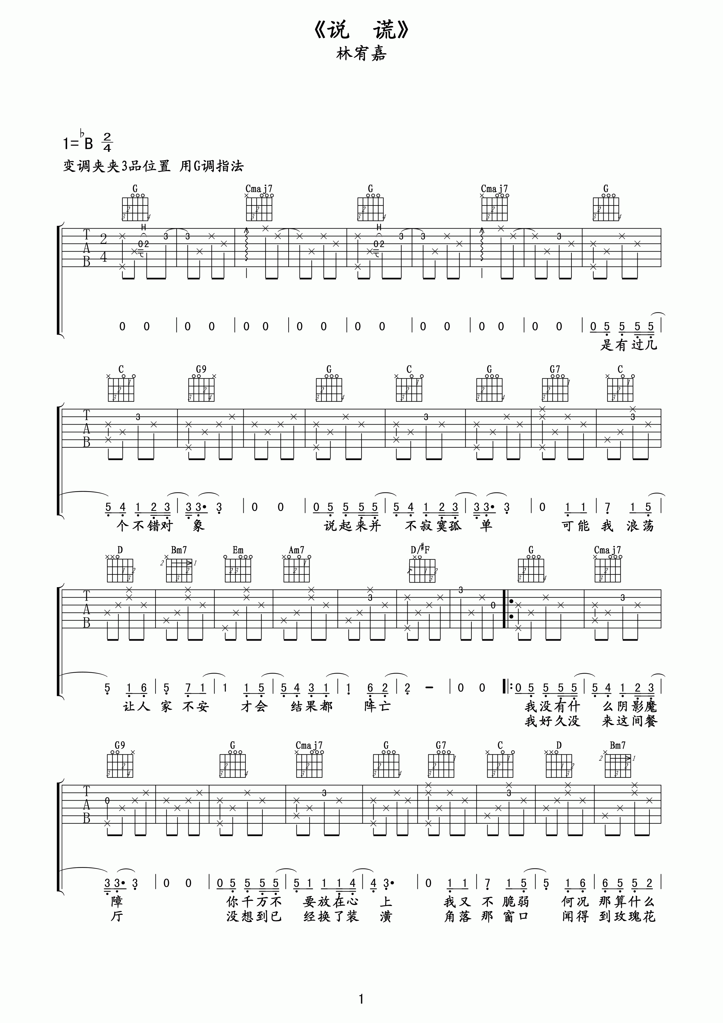 可能否吉他谱 木小雅 C调弹唱谱 吉他教