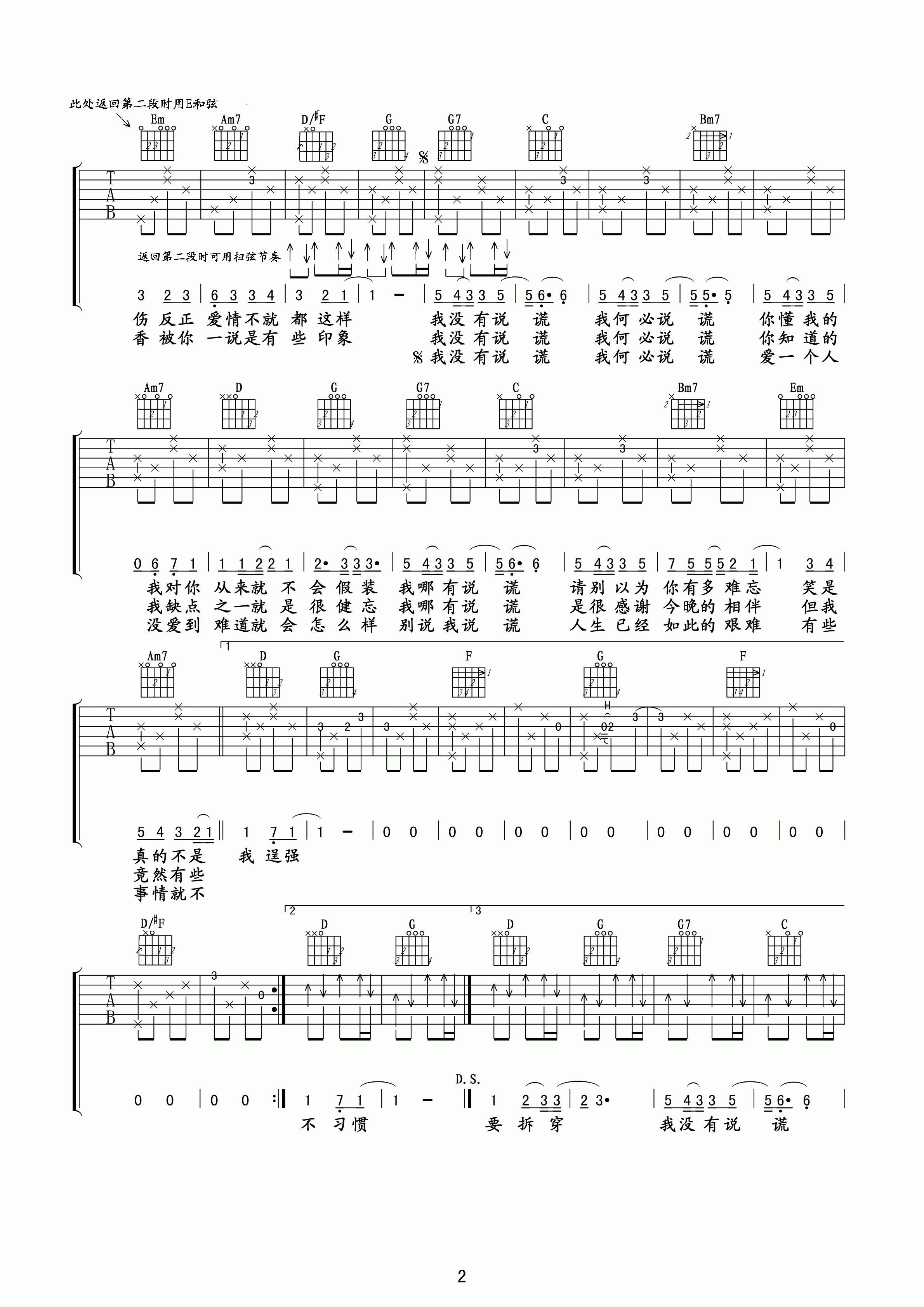 勇气吉他谱_棉子《勇气》六线谱_C调_弹