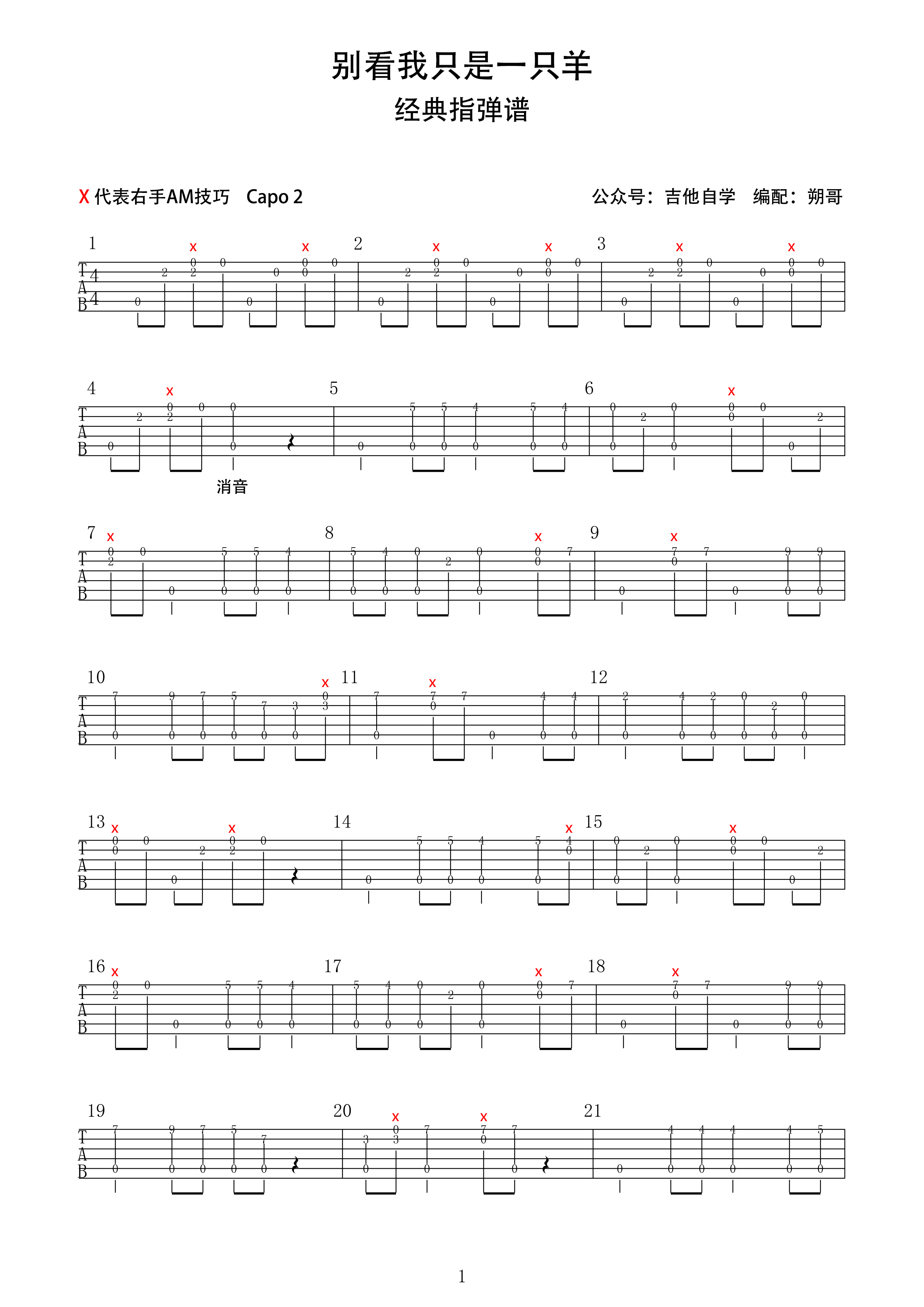 吉他谱 | 经典指弹《别看我只是一只羊》